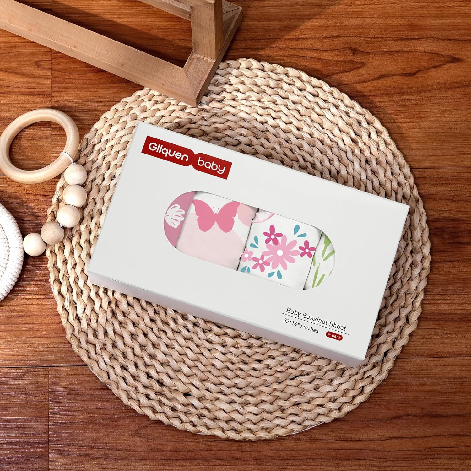 Gllquen Baby Bassinet Sheets 4 Pack, Breathable Cozy Fitted Mattress Sheet, Elastic Travel Crib Fashionable Floral Pattern, Standard Cradle Safe Sheets for Baby Boys Girls 32"x16" (Butterfly)