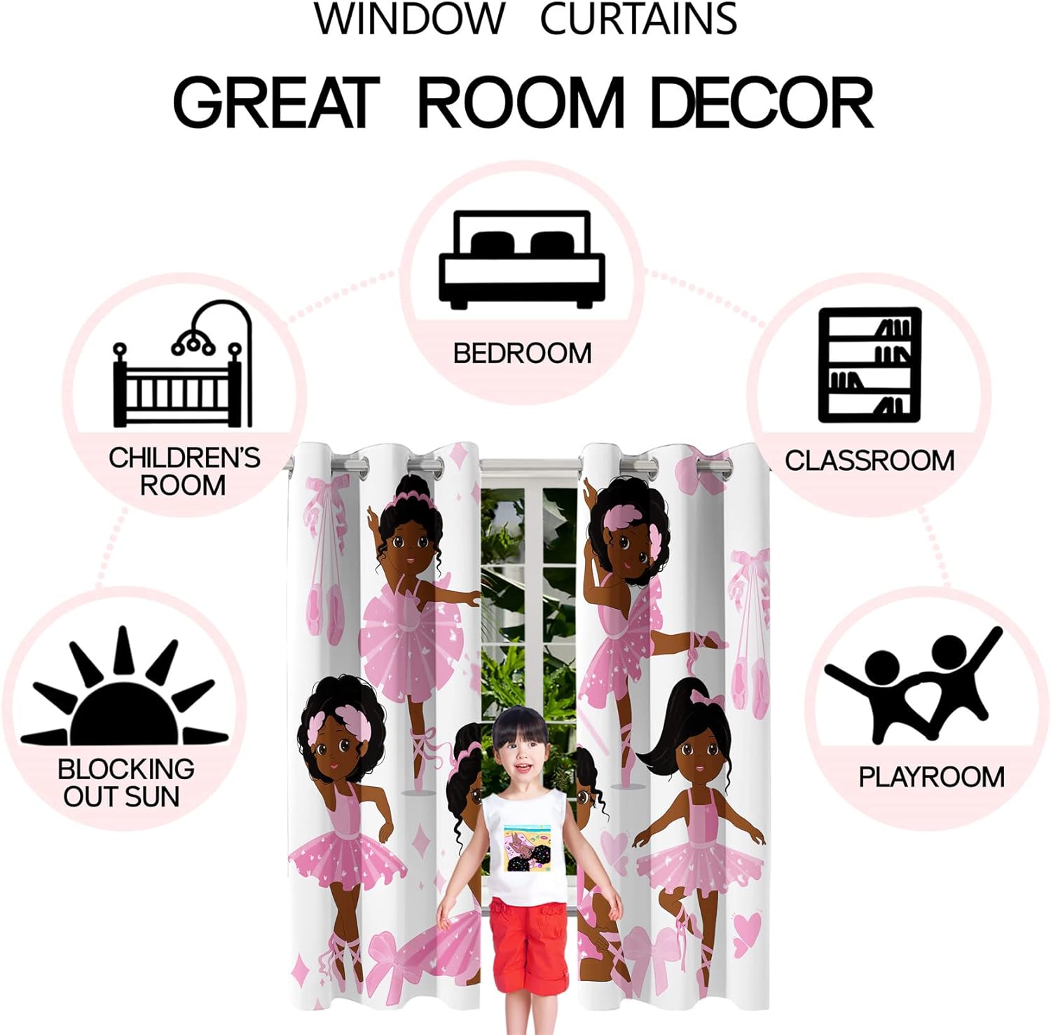 Cute Black Girl Curtain Panels for Girl Room Black Girl Curtains Grommets Top Drapes for Kids Nursery Bedroom Lovely Girls Themed Thermal Insulated Curtains, Black Girl Curtains, 82" x 84"