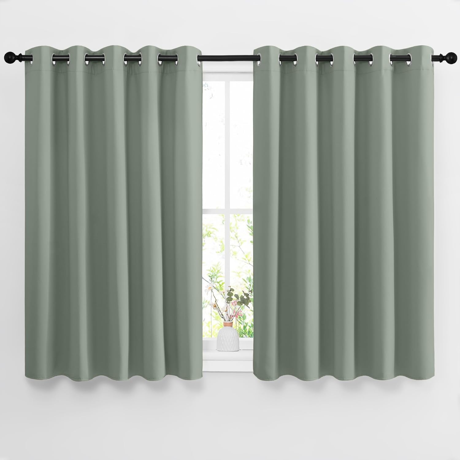 NICETOWN Blackout Curtains 54 inch Length for Bedroom - Grommet Thermal Insulated Solid Window Treatments Sound Reducing for Kids Room/Home Office, Sage Green, W66 x L54, Set of 2