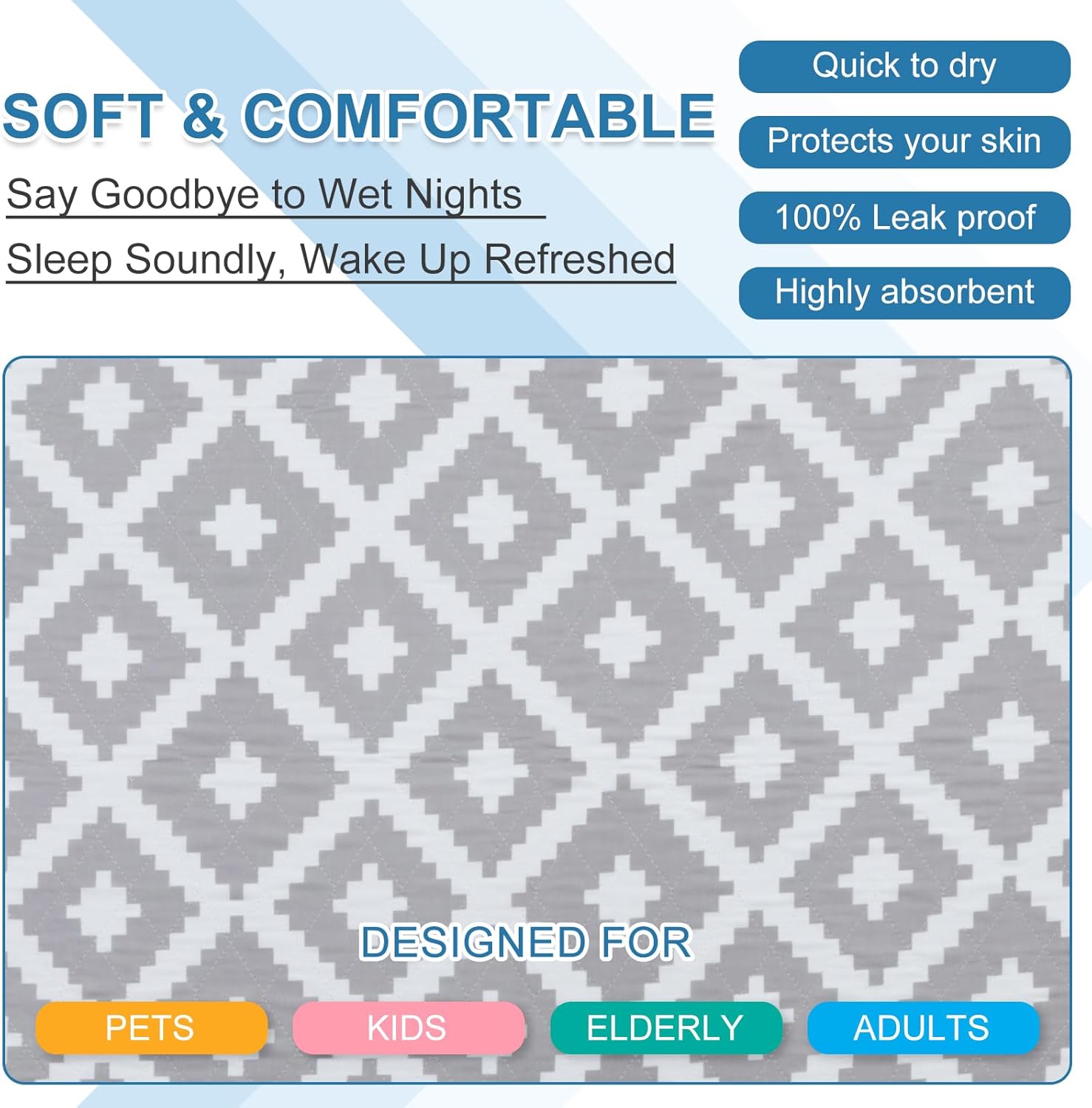 - Secure Non-Slip Grip for Undisturbed Sleep: Tired of pads that bunch up? Our waterproof bed pad features an innovative bottom layer with hundreds of non-skid gripping dots. Unlike ordinary chucks pads, it stays firmly in place all night, no matter how much you move. This provides a safer, more comfortable rest for toddlers and elderly users alike, without any disruptive slipping