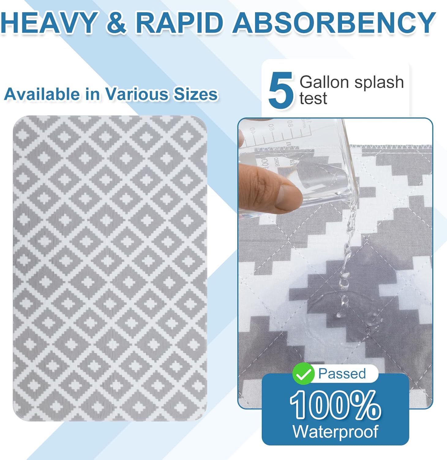 - Machine Washable & Reusable for Easy Care: Designed for hassle-free convenience, our washable underpads are incredibly durable. Simply toss this waterproof mattress pad into the washer and dryer on low heat, and it will maintain its waterproof integrity and absorbency like new. This reusable waterproof pad is an eco-friendly and cost-effective alternative to disposable chucks pads for adults