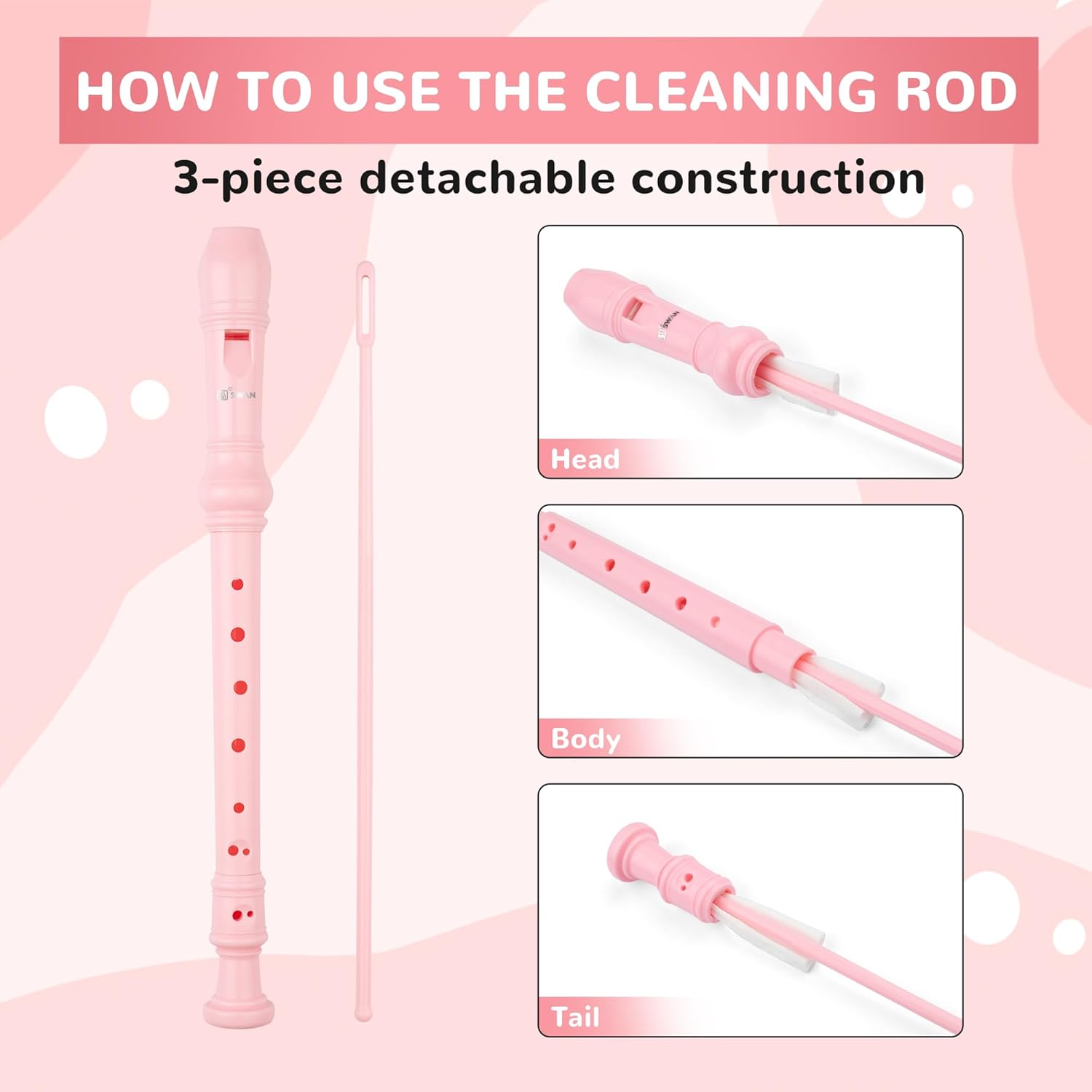 - SWAN recorder instrument is 3-piece detachable, easy to clean. The soprano recorder set comes with a cleaning stick that helps clean the inside of the recorder and keep it clean.