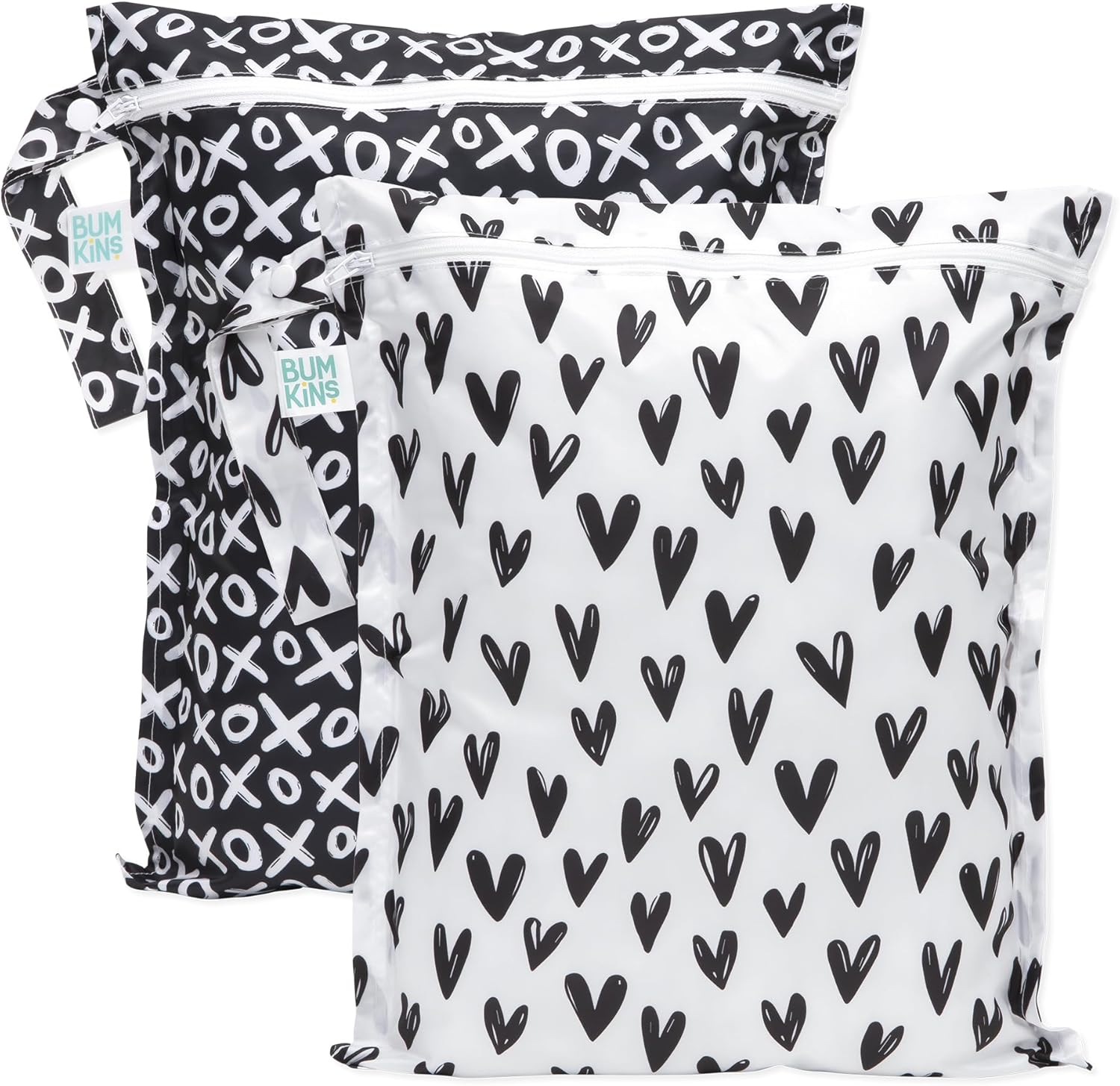 Bumkins - Waterproof Wet Bag - For Baby, Travel, Swim Suit, Cloth Diapers, Pump Parts, Pool, Gym, Toiletry, Strap to Stroller - Reusable & Easy to Clean - 2pk - Hearts & XOXO