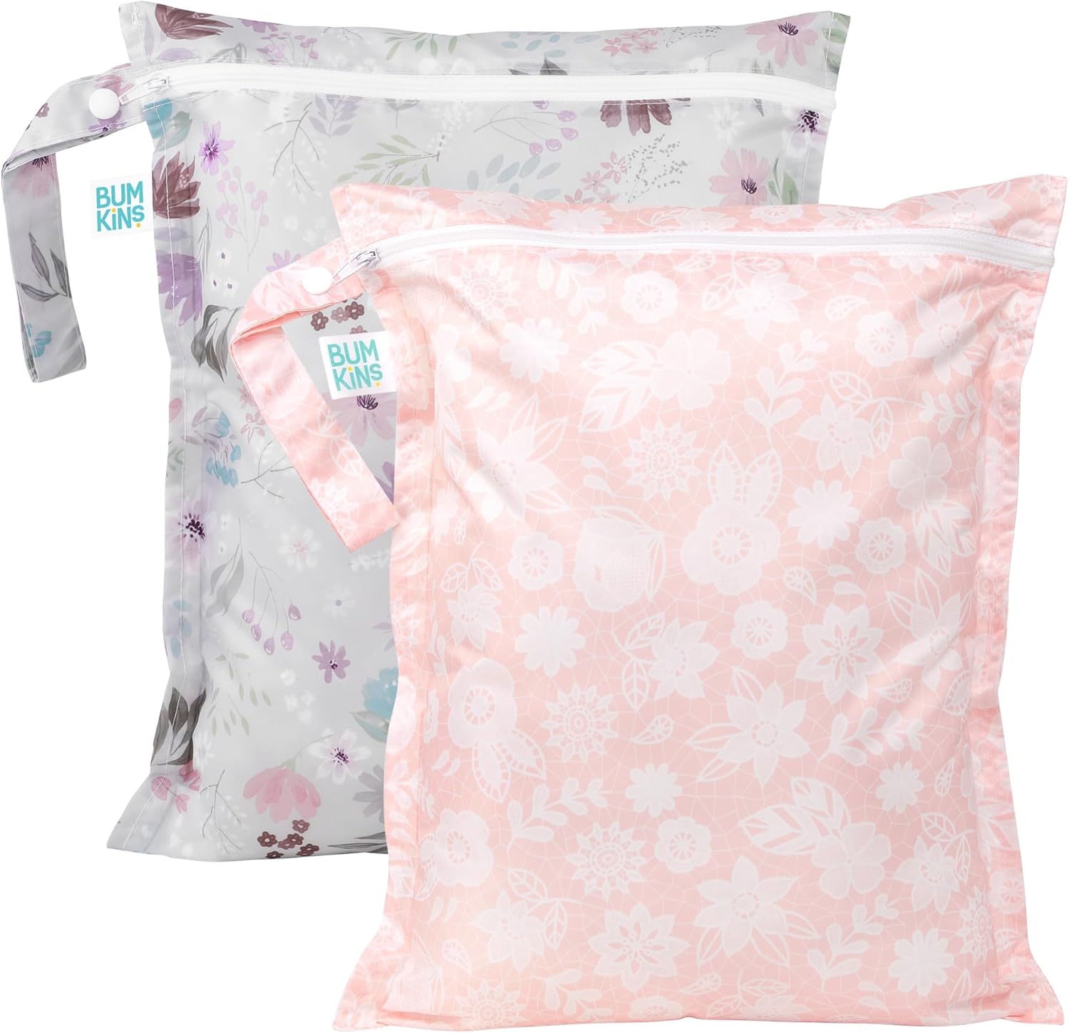 Bumkins - Waterproof Wet Bag - For Baby, Travel, Swim Suit, Cloth Diapers, Pump Parts, Pool, Gym, Toiletry, Strap to Stroller - Reusable & Easy to Clean - 2pk - Floral & Lace