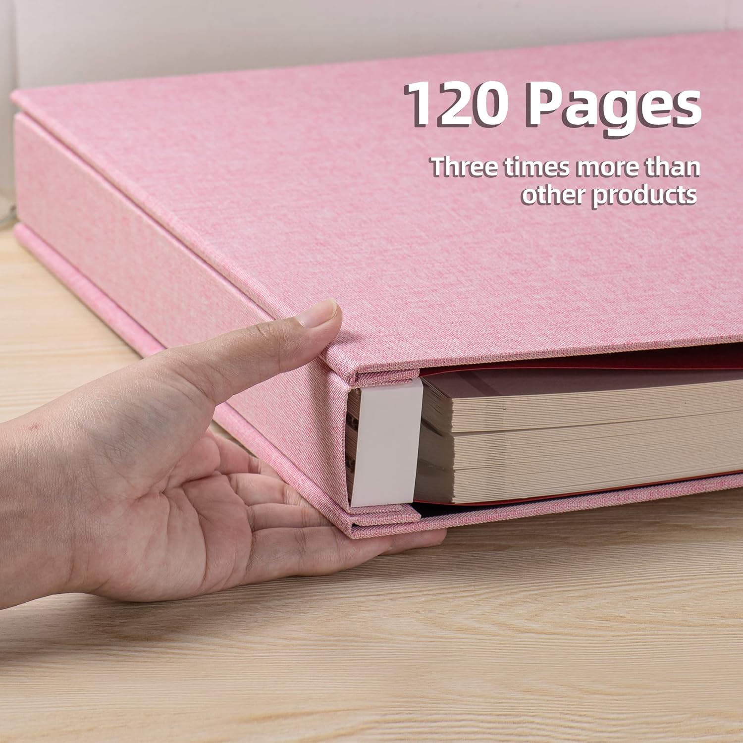 Large Photo Album Self Adhesive 4x6 8x10 10x12 Scrapbook Magnetic Album DIY Scrapbook Length 13 x Width 12.8 (Inches) 120 Sticky Pages Linen Cover DIY Photo Album(Pink)