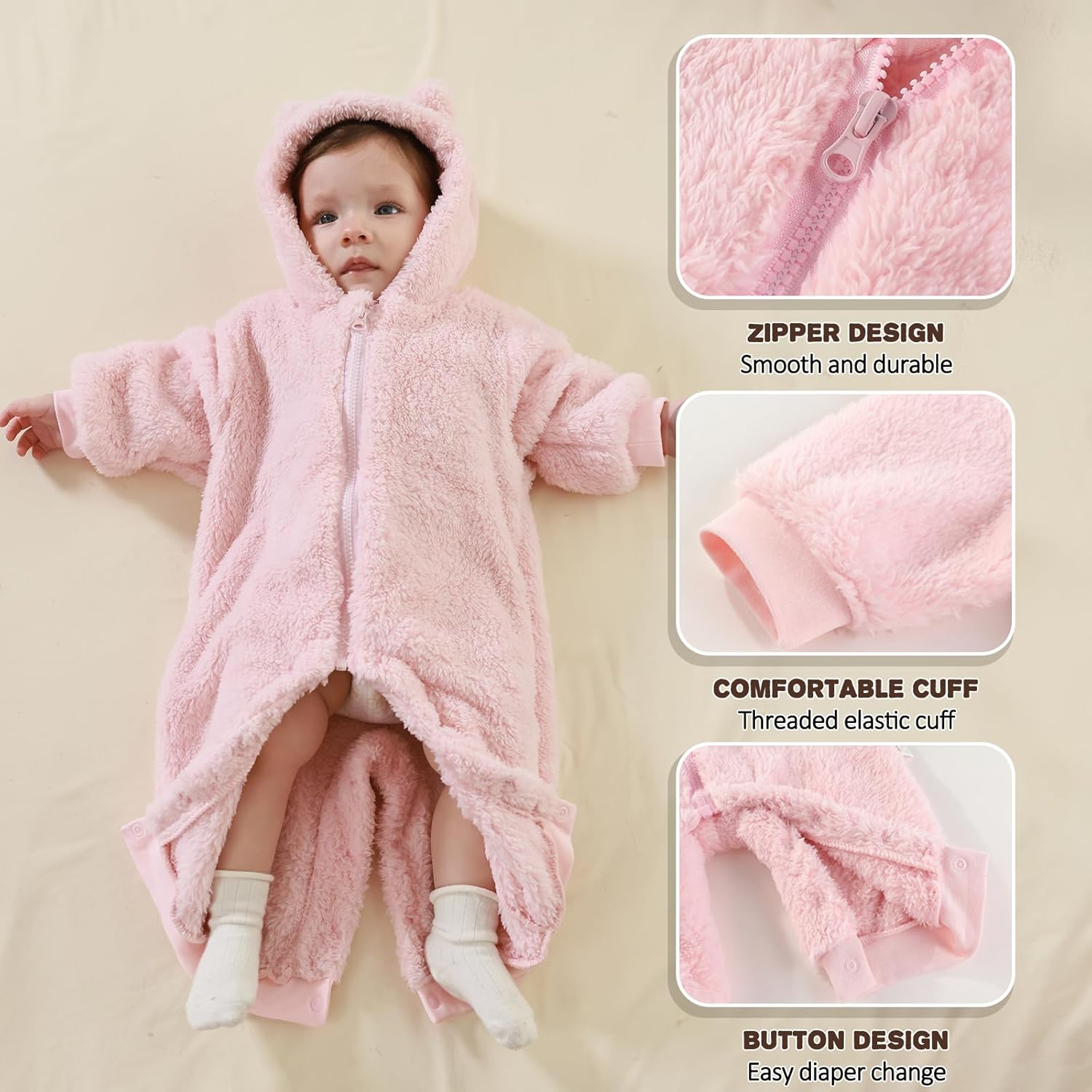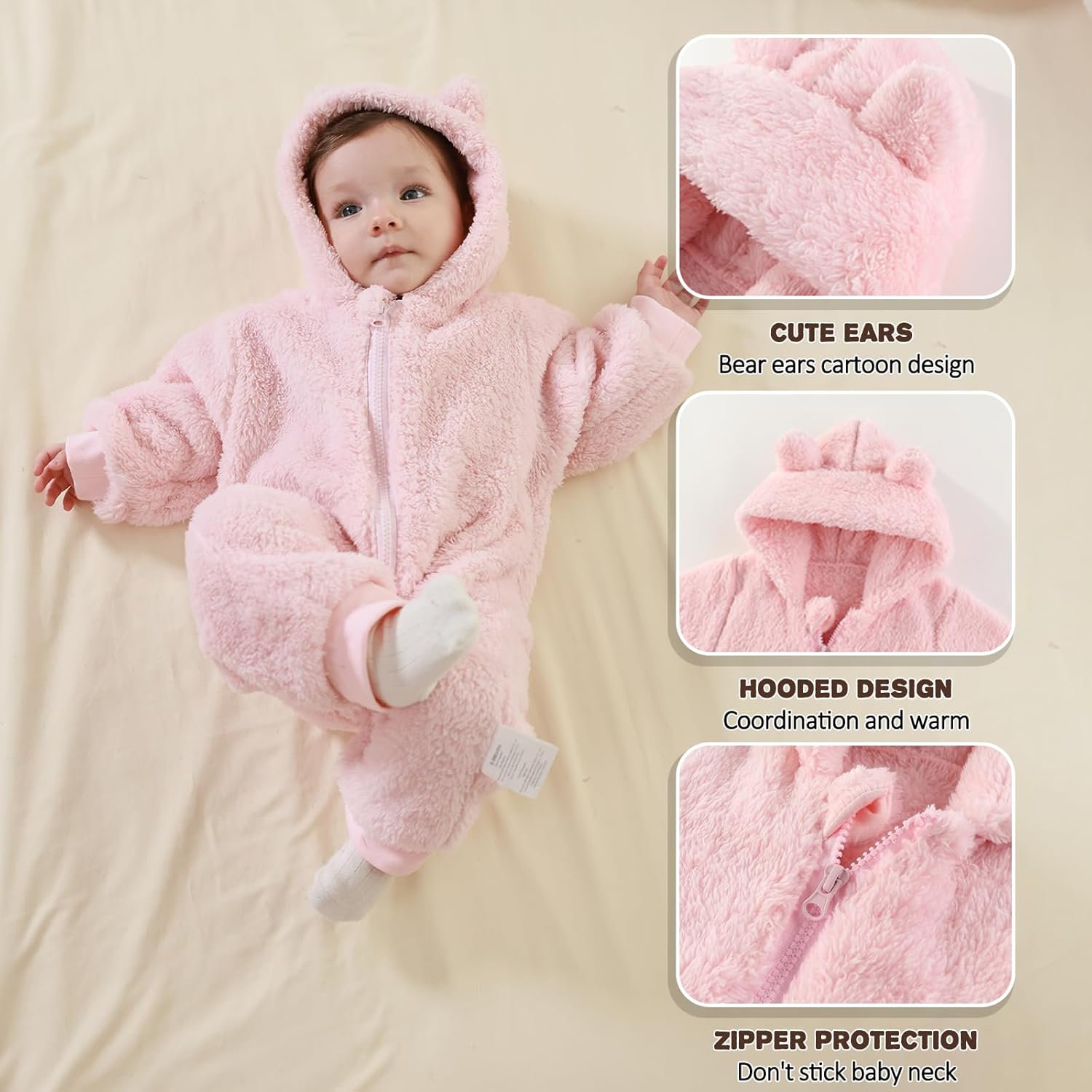 • Winter Warm Choice: There are 5 different colors of regular and thickened plus one romper baby bear outfit to choose from. The animal-themed baby fleece romper has an all-match solid design,a bear ear hood can protect baby's head from wind and cold