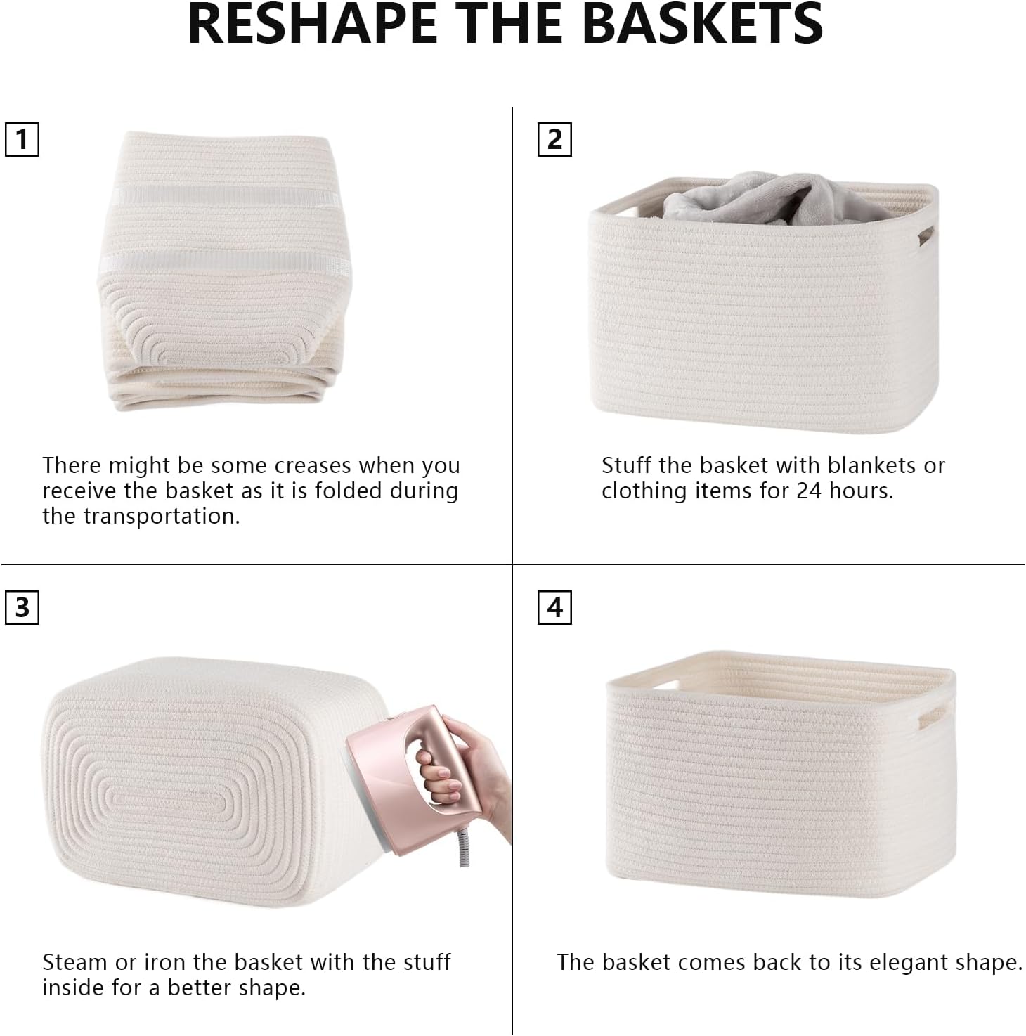 - Note: SIXDOVE woven baskets are folded for shipping. It will turn back to its elegant shape quickly by filling it with towels or blankets, and ironing is a great idea to regain the creases. Also, you can fold it into a flat shape for easy storage when not in use