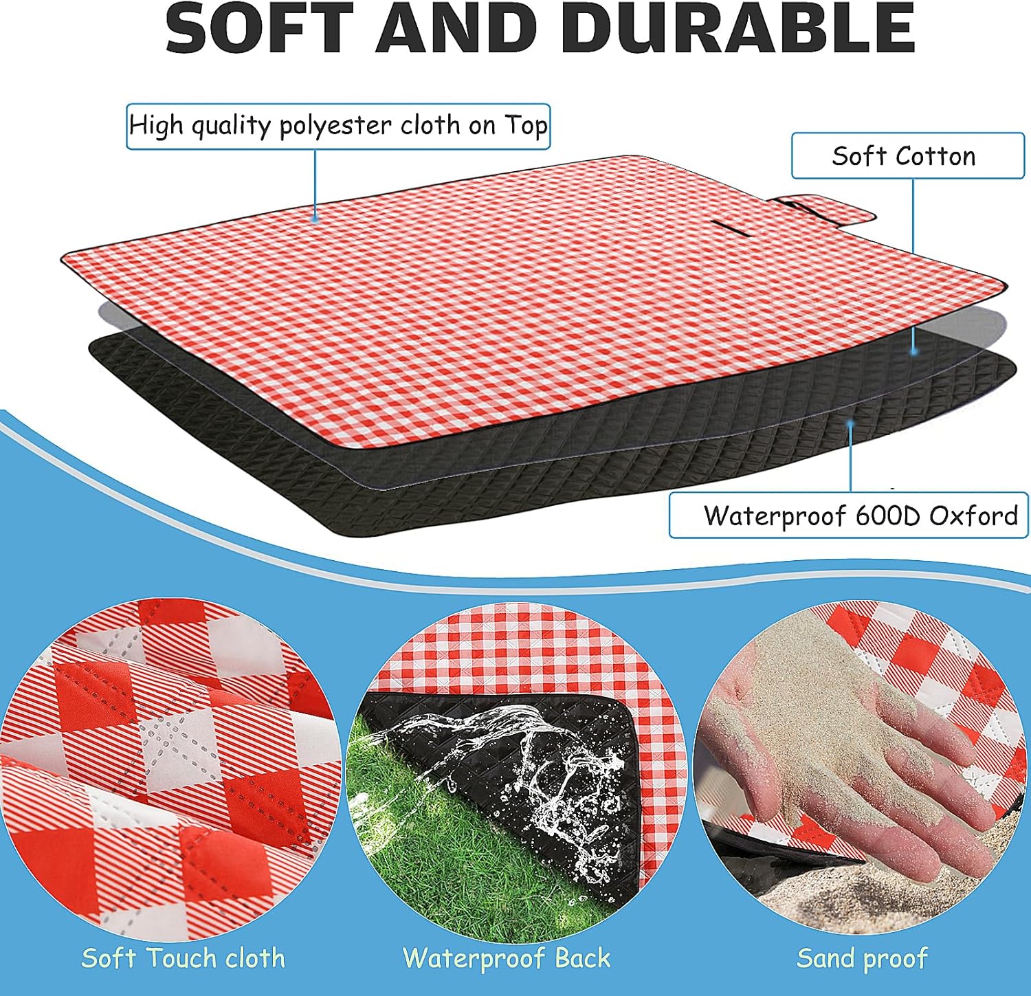 - Outdoor blanket, easy to clean : If your child accidentally spills food and drink on the mat, you can easily wipe off with a tissue towel. And don't worry about pets running around on it with footprint, you can wash it. Durable picnic blankets, camping mat, beach mat, travel blanket.
