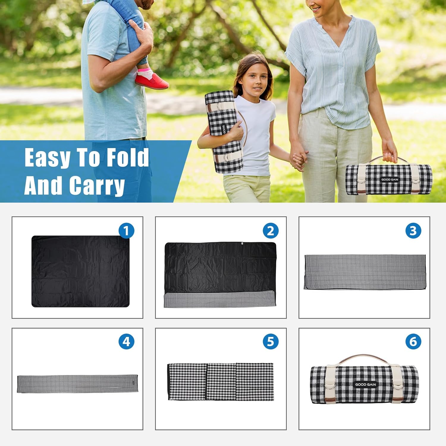 - WATERPROOF BACKING MATERIAL- Prevents picnic rug from getting wet on damp lawns or surfaces; provides extra sitting comfort, perfect for family outdoor activities.