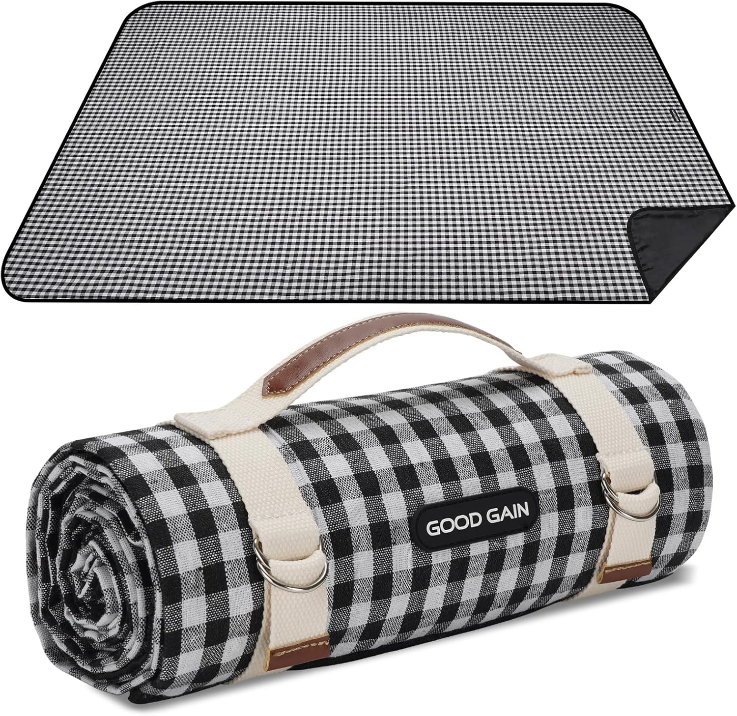 Picnic Outdoor Blankets Waterproof Extra Large - Beach Mat Sand Free Foldable with Carry Strap | Portable Camping Blanket | Park Blanket for Grass Park, Hiking, Travel, Concerts, Indoor (Black)