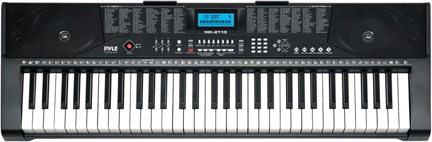 PYLE Electric Piano, Electric Keyboard Piano, Music Keyboard, 61 Keys, Bluetooth, LCD Display, Portable Design, Karaoke Function, Includes Stand, Stool, Book Rack, Headset, Perfect for Beginners