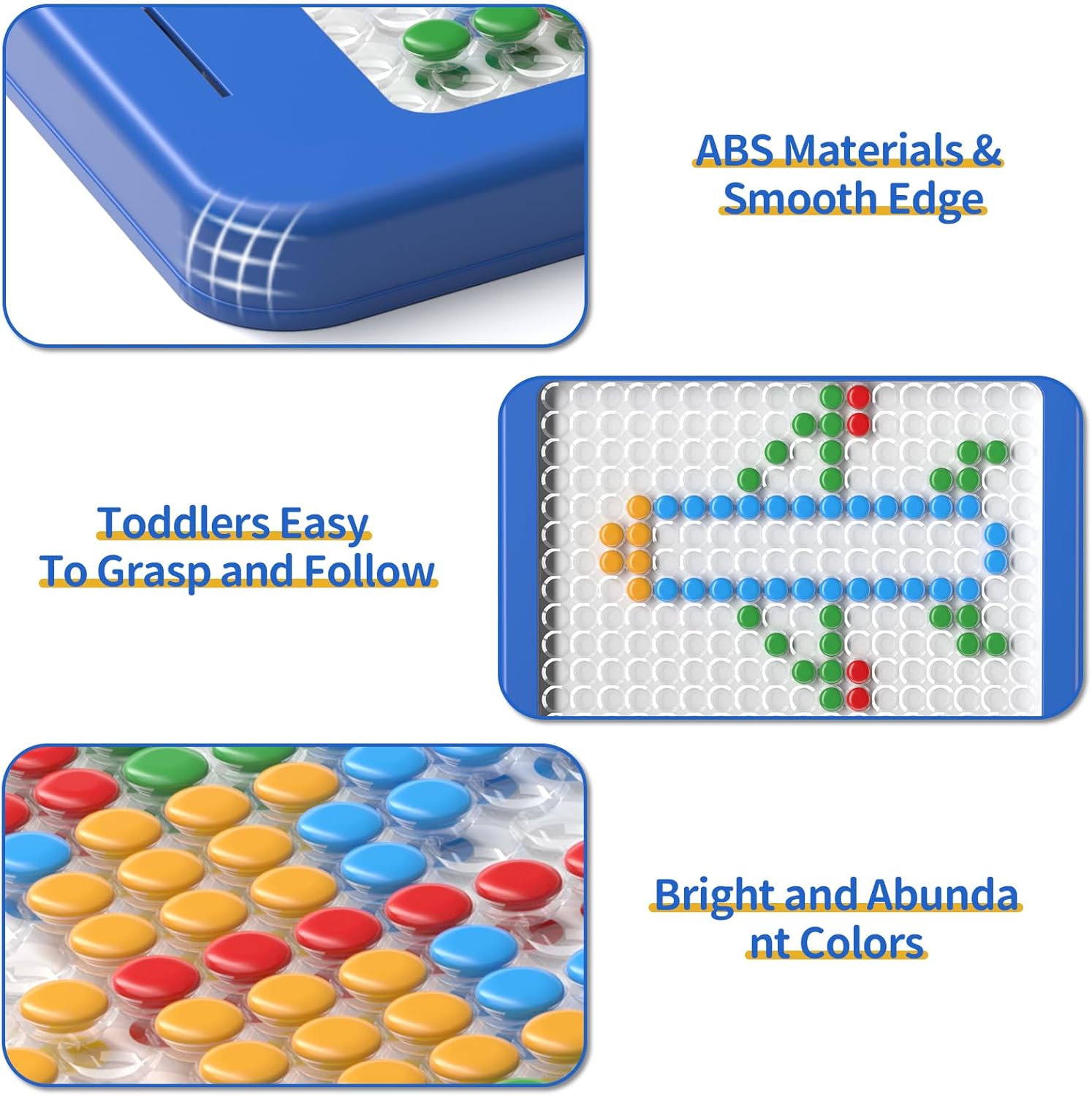 - 【Montessori Education】This really fun magnetic dots board toy is great for learning colors, shapes, and counting that can improve kids' concentration, patience and creativity. Playing with magnetic drawing board can help with kids improve needed hand and arm dexterity, developing hand-eye coordination and motor skills.