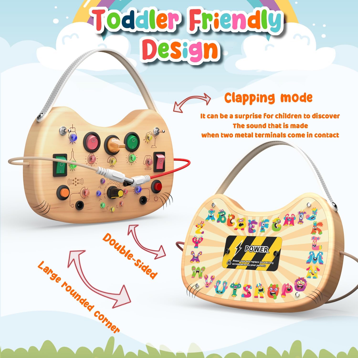 - 【Give your child a meaningful gift】: Our Busy Board comes with 17 LED lights 10 switches, children can play and interact with adults, providing endless fun for your child, this sensory toy is perfect for birthdays, Christmas, Halloween, Thanksgiving, preschool graduation, it is also a must-have toddler gift when traveling. It's not only fun, but it helps with cognitive development and imagination.