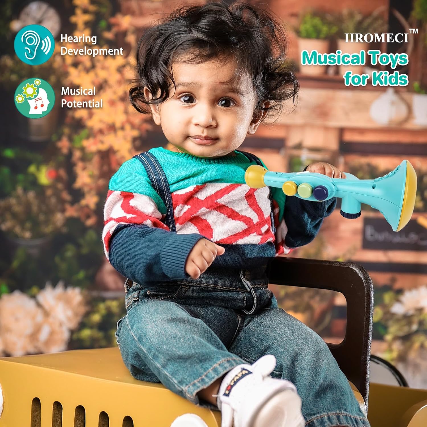 Musical Instruments Toys for Kids, Toddlers Little Trumpet and Baby Educational Toy for Girls & Boys, Ages 1-3 (Blue)