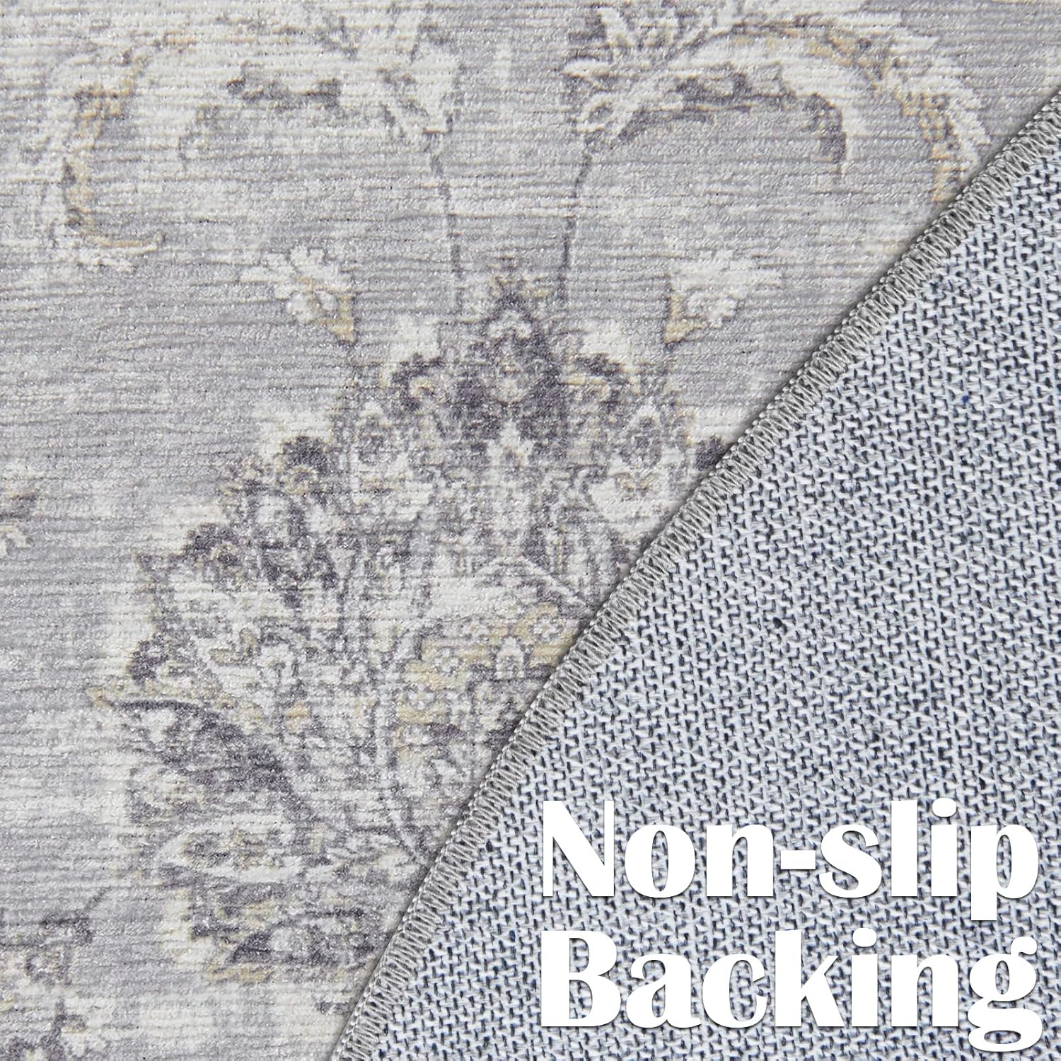 jinchan Round Rug 7ft Area Rugs - Vintage Floral Distressed Design Machine Washable Non-Slip Low-Pile Ultra-Thin Circle Rug for Living Room Dining Room Bedroom Home Office Farmhouse (7' Round,Grey)