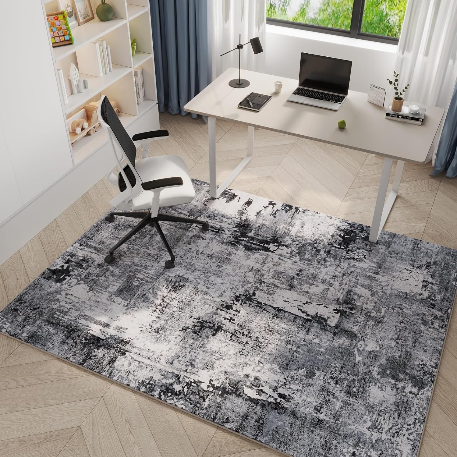 4x6 Rug Washable Boho Soft Area Rug Abstract Pattern Non-Slip Faux Wool Vintage Rug for Living Room, Bedroom Rug, Farmhouse, Dining Room, Kids Playroom, Grey and Black