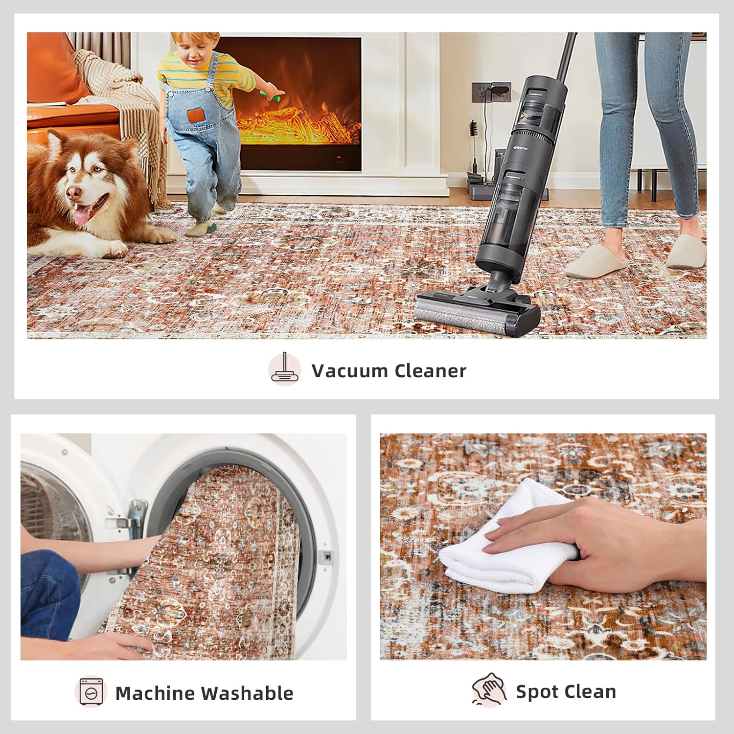 - [Non-Slip Backing]: The large area rug is made of snowflake-shaped TPE non-slip rubber backing takes more safety. The non slip rug is deal for everyday indoor locations where kids or pets are active.