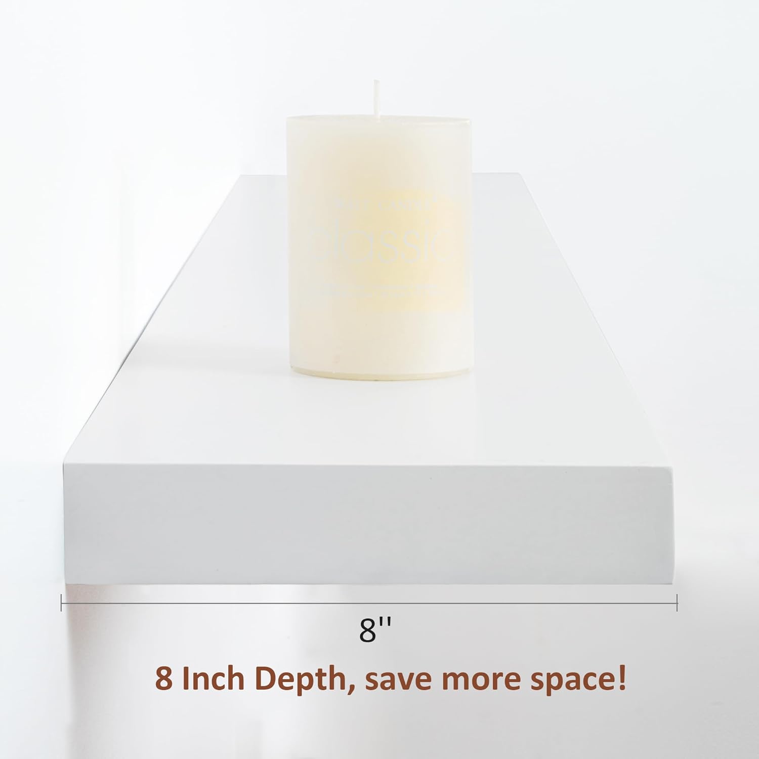 Floating Shelves 48 Inch Long, 8" Deep White Floating Shelf Wall Mounted, Deep & Thick Wall Shelf for Fireplace Mantel, Large Display Storage Shelving for Books, Living Room, Bedroom, Set of 1