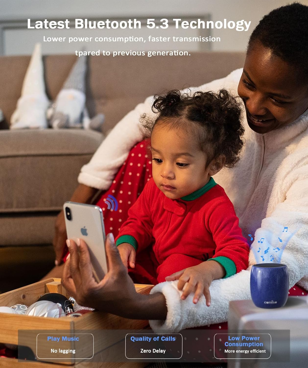 - [LATEST BLUETOOTH 5.3 TECH & WIDE COMPATIBILITY] This wireless speaker transmitted by A2DP technology, lower power consumption, faster transmission and lag-free calls compared to previous generation Bluetooth technology. Mini Bluetooth speaker with built-in rechargeable battery, with a full charge and playing at medium volume, it gives you about 7~10 hours of uninterrupted music Journey. At the same time, this wireless speaker is compatible with multiple devices such as computers,mobile phones.