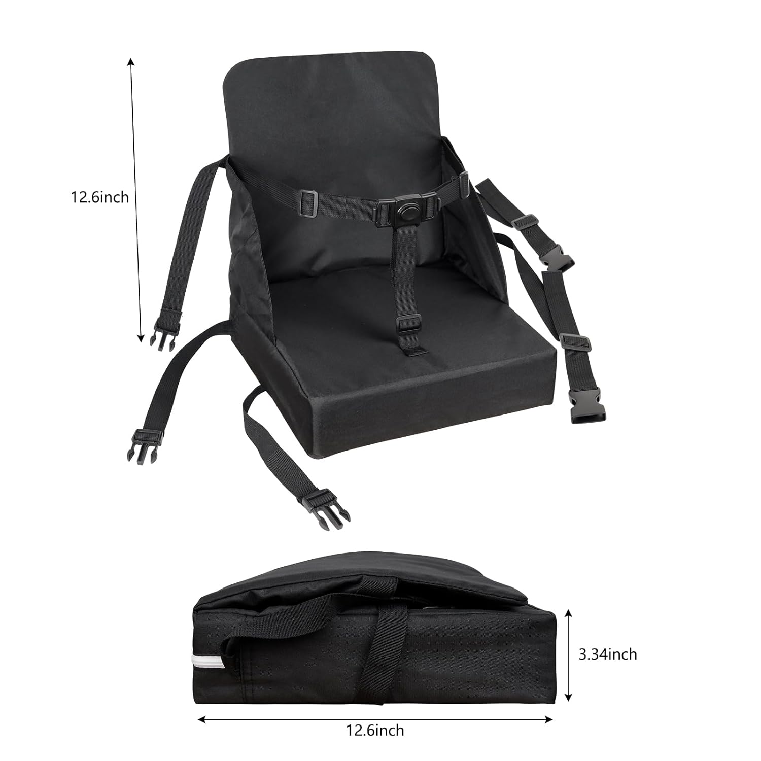 Toddler Booster Seat for Dining Table, Booster Seat for Table, 12.6x3.34 Inch Portable High Chair for Travel, HOSEASCA Compact Lightweight Travel Booster Seat with Adjustable Straps for Baby(Black)
