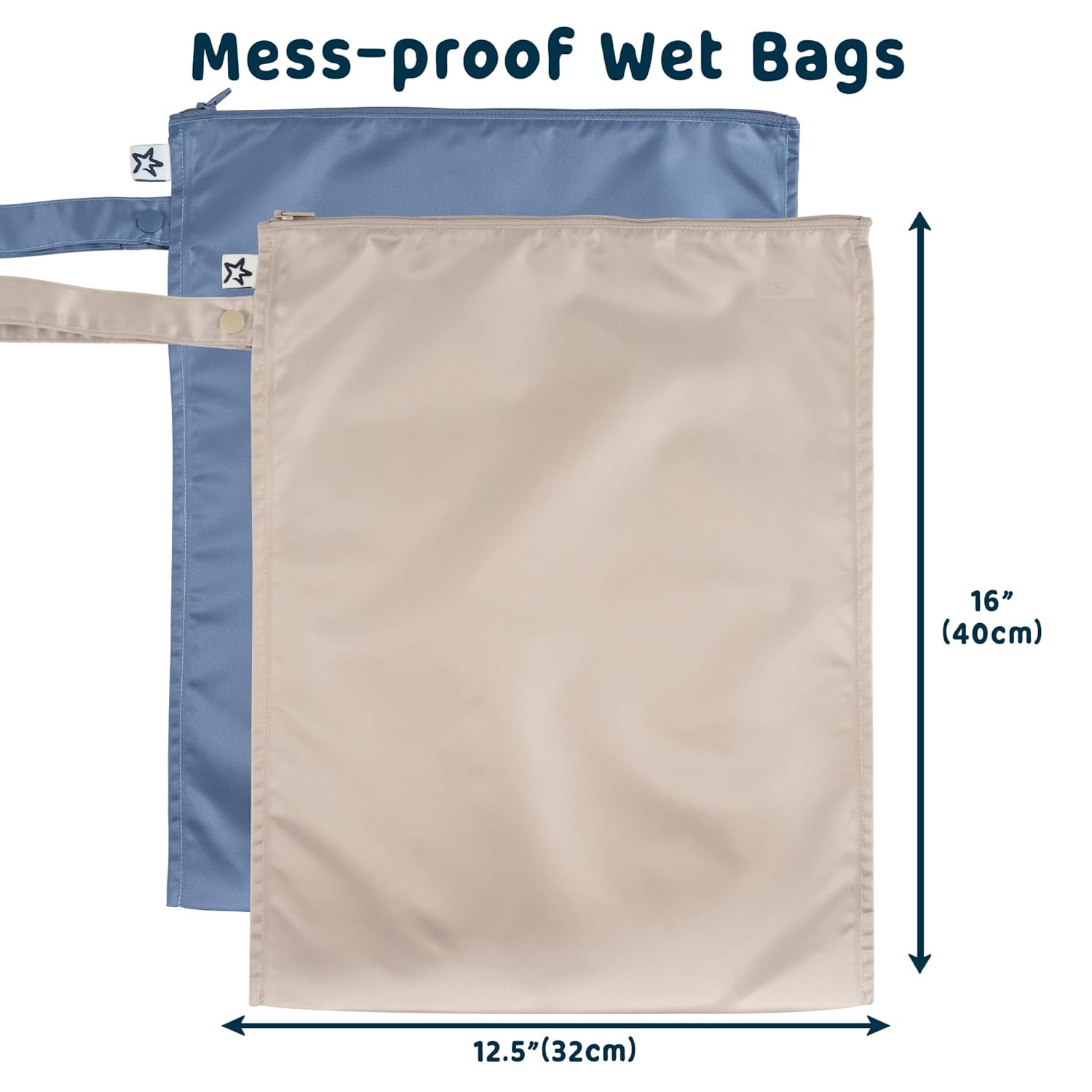 Tiny Twinkle Mess-Proof Waterproof Wet Dry Bag | 2-Pack Reusable Wet Bags for Swimsuits & Baby Clothes | Leakproof Wet Bag for Travel & Diaper Changes for Baby (Periwinkle, Pebble)