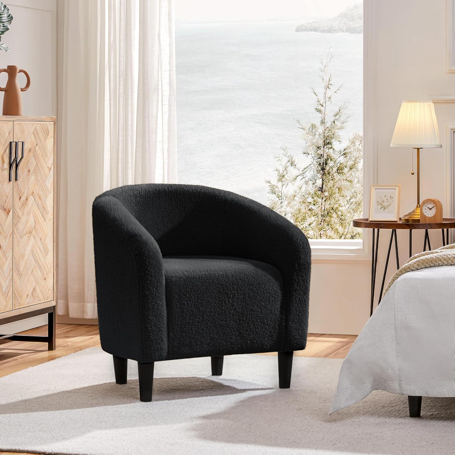Yaheetech Accent Barrel Chair, Boucle Fabric Club Chair, Furry Sherpa Elegant Armchair with Cozy Soft Padded, Suitable for Living Room Bedroom Reception Room Office, Black