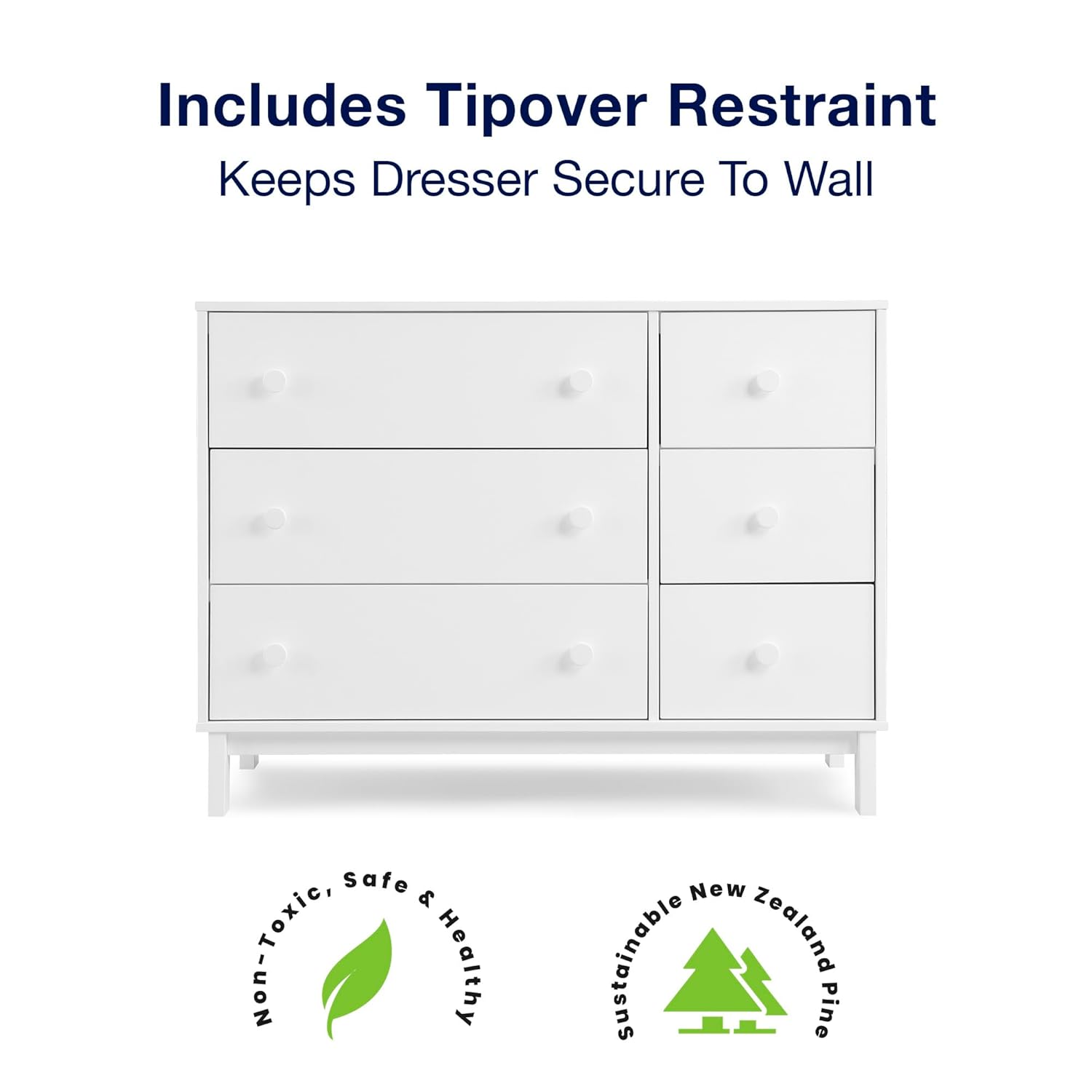 - VERSATILE STORAGE: Dresser features 3 small drawers and 3 larger drawers | All colors feature a cool two-tone look with contrasting colored knobs (except Bianca White color)| Dresser includes tipover restraint for you to securely attach to your wall