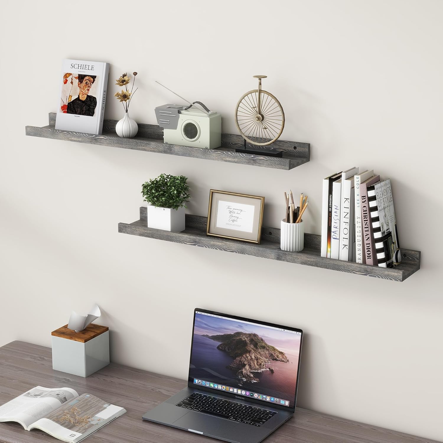 36 Inches Floating Shelves for Wall, Solid Pine Wood Picture Ledge Shelves, Wall Shelves with Lips, Nursery Book Shelves for Toys Storage Living Room Bedroom Photo Frames (2 Pcs, Grey)