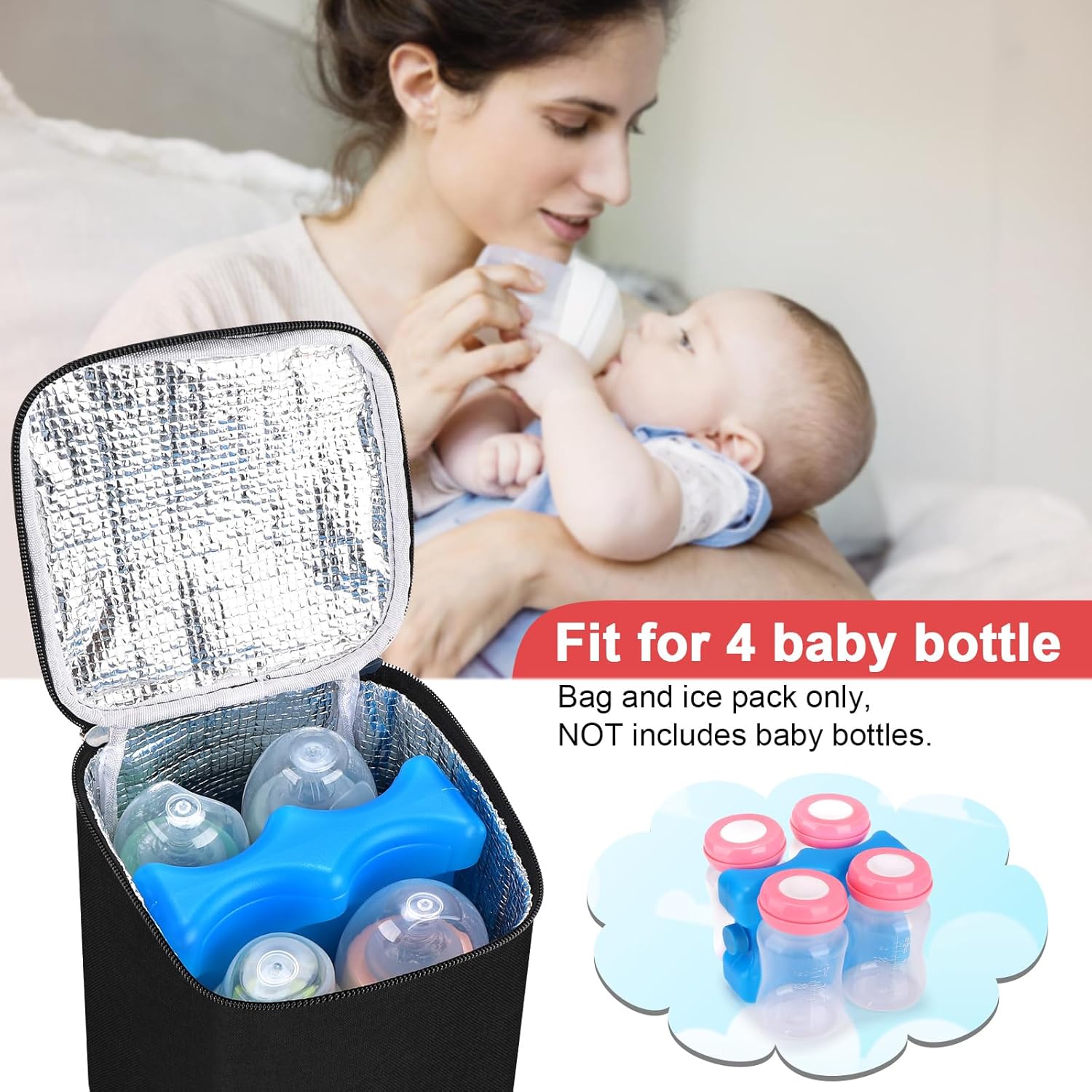 - LARGE CAPACITY: The milk bottle cooler bag suitable for up to 4 large 8oz baby bottles at once, meet baby daily needs. Perfect cooler bag for transporting breast milk from work to home or leave with daycare. It also can be used as lunch bag.