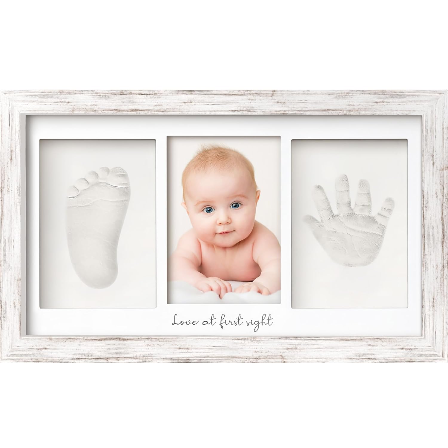 Baby Hand and Footprint Kit - Clay Handprint Keepsake Frame, Newborn Nursery Picture Frame, Personalized New Mom Gifts for Baby Shower & Registry (Vintage White)