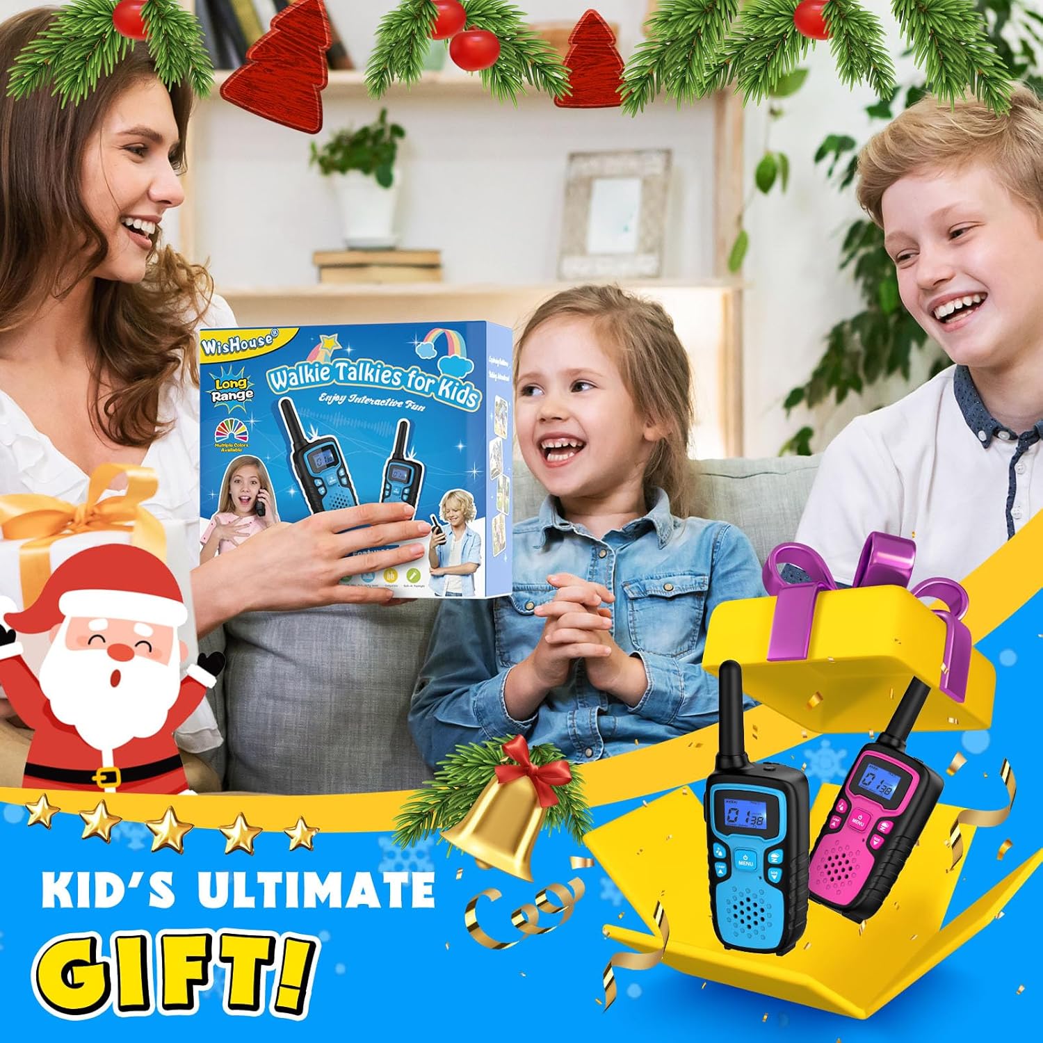 Wishouse Walkie Talkies for Kids Rechargeable Long Range,Xmas Birthday Gift for 4 5 6 7 8 9 Year Old Boys Girls,Hiking Gear Camping Games Cool Toys with NOAA,SOS Siren,Lamp,Lanyards,Easy to Use,4 Pack