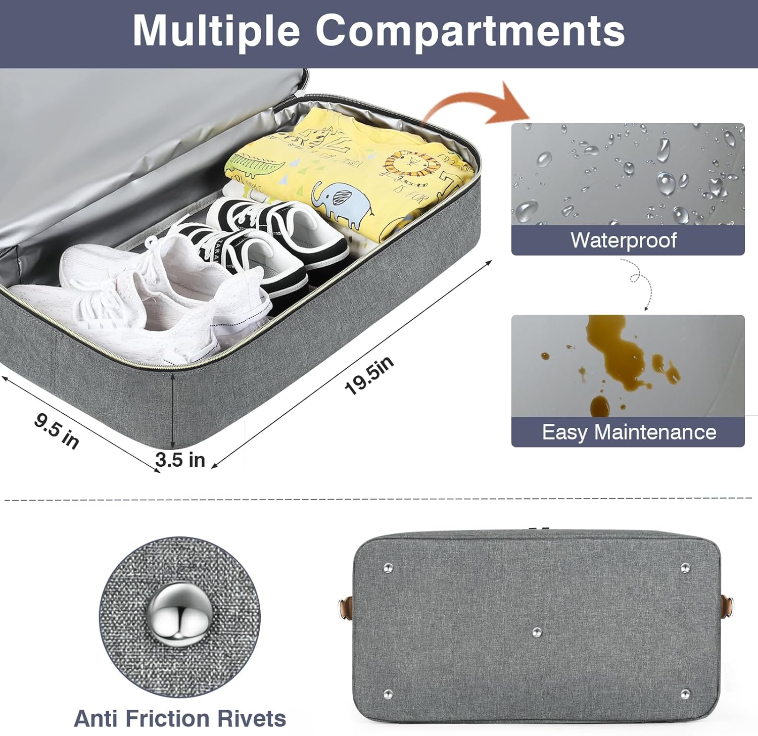 - [Dry Wet Seperated Compartment] The compartment of this travel diaper bag is fashioned with PVC waterproof materials.This compartment can also be used to hold dirty clothes, shoes or wet towels, separating wet and dry to prevent your clean luggage from getting soiled or wet. Compartment size: 19.5*9.5*3.5in. Also studded 4 round metal feet in the bottom to keep the baby diaper bag clean and off the ground.