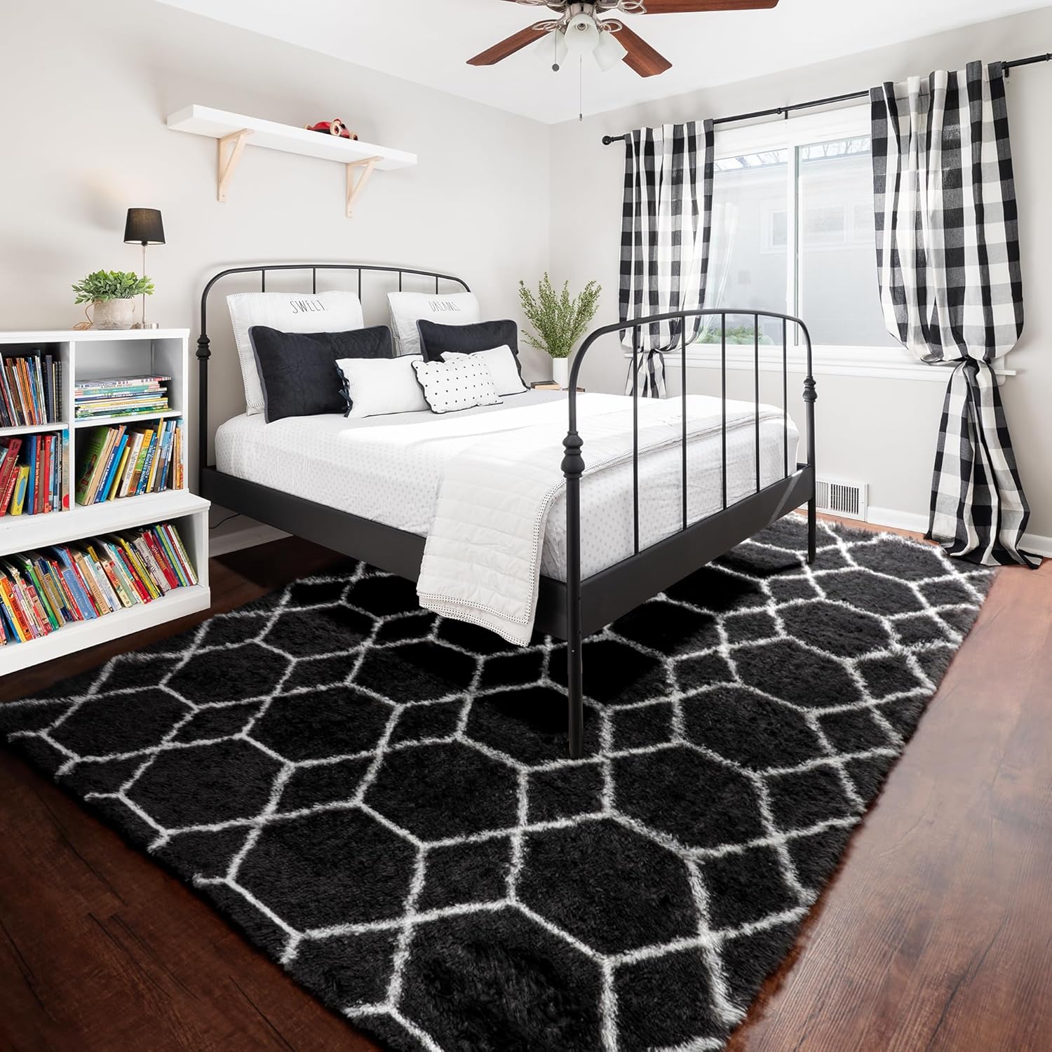 ONASAR 8x10 Area Rugs for Living Room, Fluffy Black and White Bedroom Rug, Washable Geometric Boho Large Soft Plush Shaggy Fuzzy Floor Carpet for Nursery Kids Classroom Playroom Dorm Home Decor
