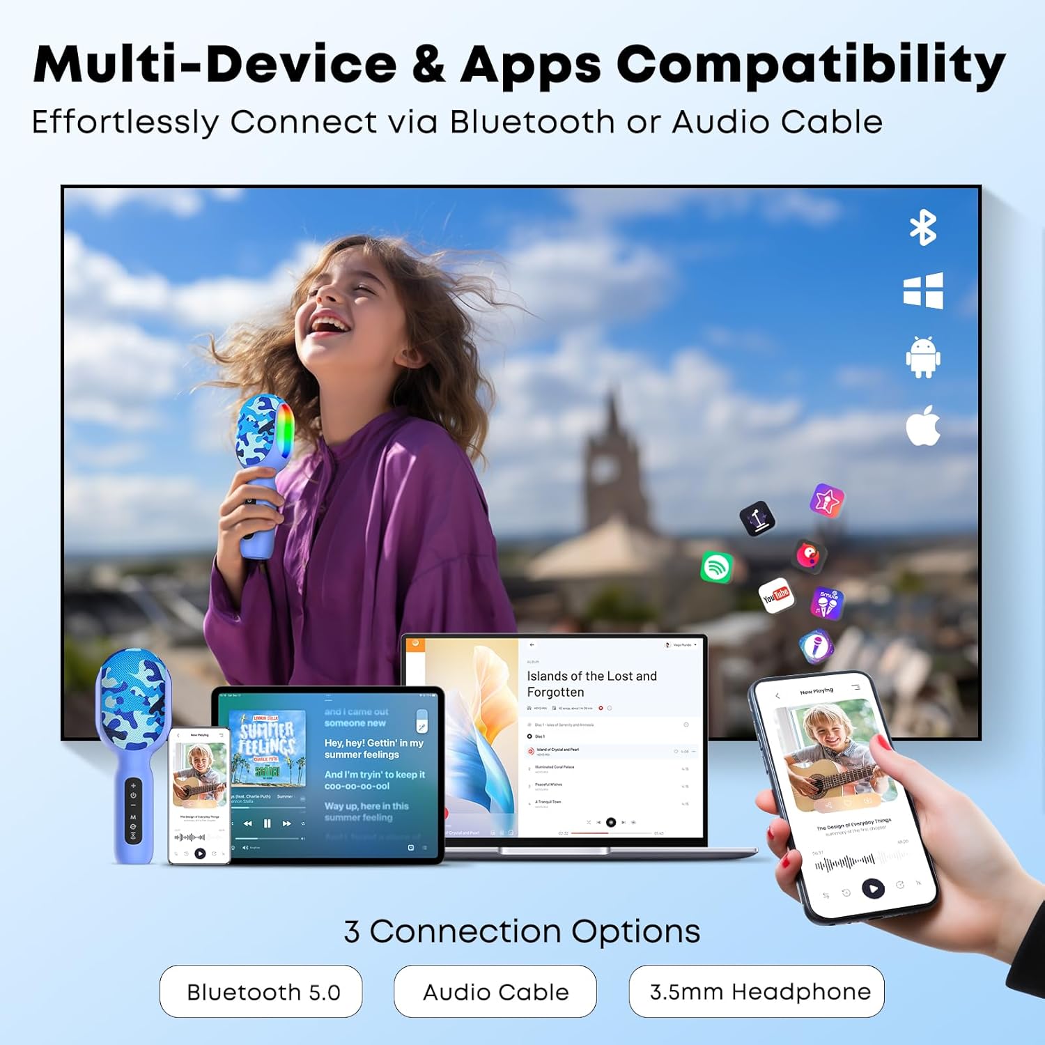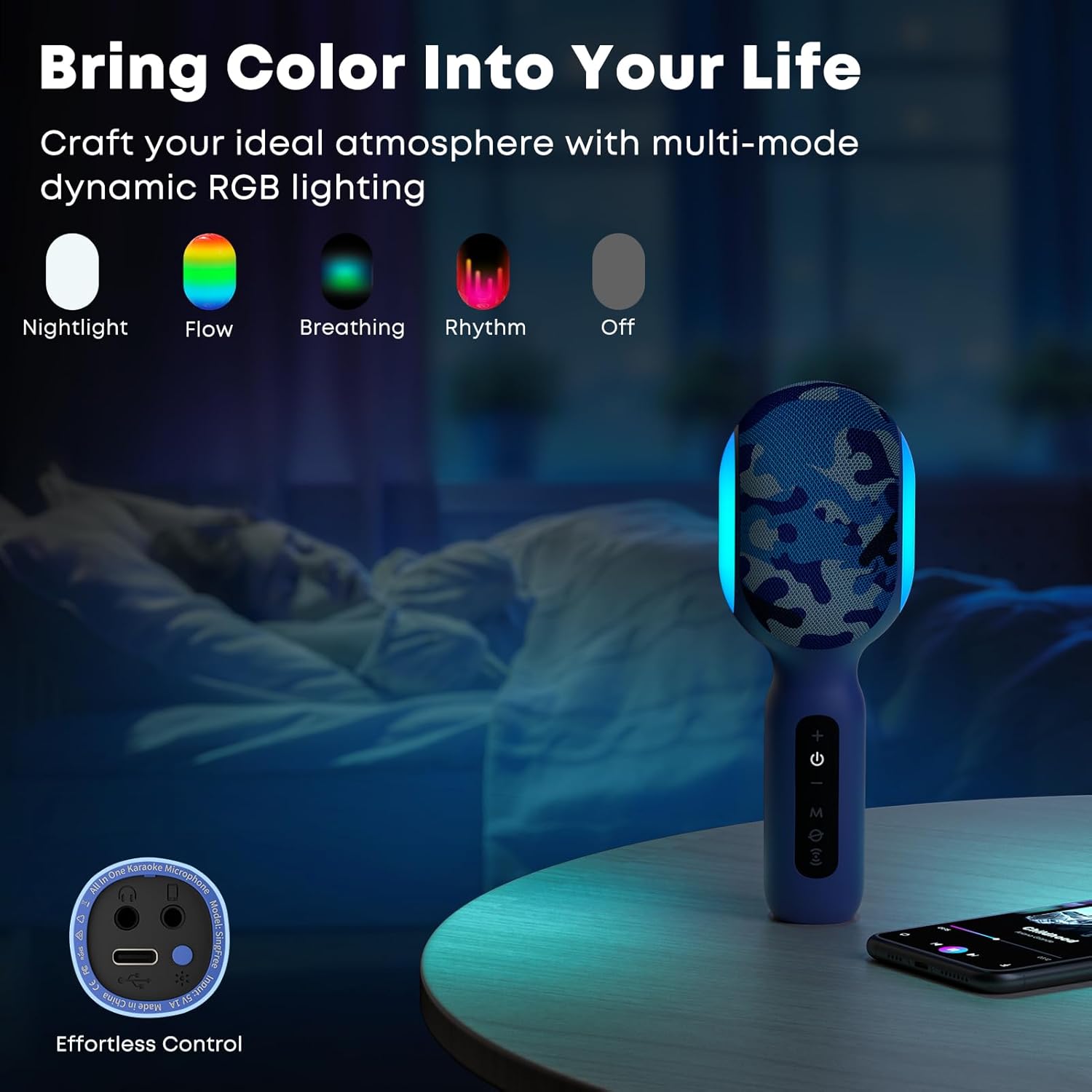 - 【5-in-1 Portable Wireless Karaoke Microphone】This karaoke microphone is crafted using eco-friendly, sustainable materials in compliance with RoHS standards. Its exceptional ergonomic design molds perfectly to your hand, providing unparalleled comfort. As a versatile, high-end Bluetooth microphone, it effortlessly serves as a karaoke machine, wireless speaker, amplifier, recorder, voice changer, and even a comforting nightlight. It's your all-in-one entertainment companion.