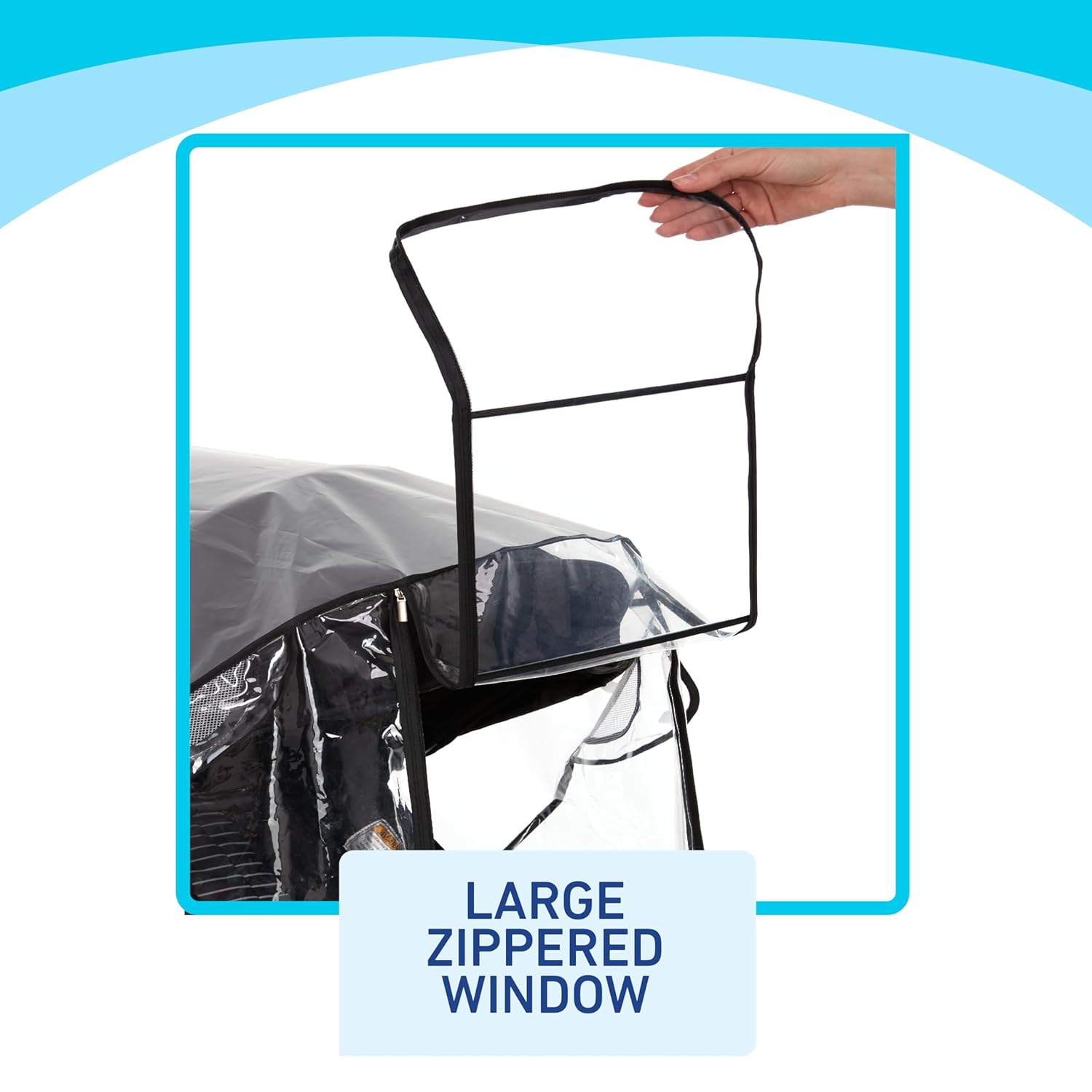 - PREMIUM ZIPPERED WINDOW: Rain Cover has large see through window, with waterproof zipper to open and close. Perfect for when the rain stopes for a couple minutes, to give your loved one some fresh air