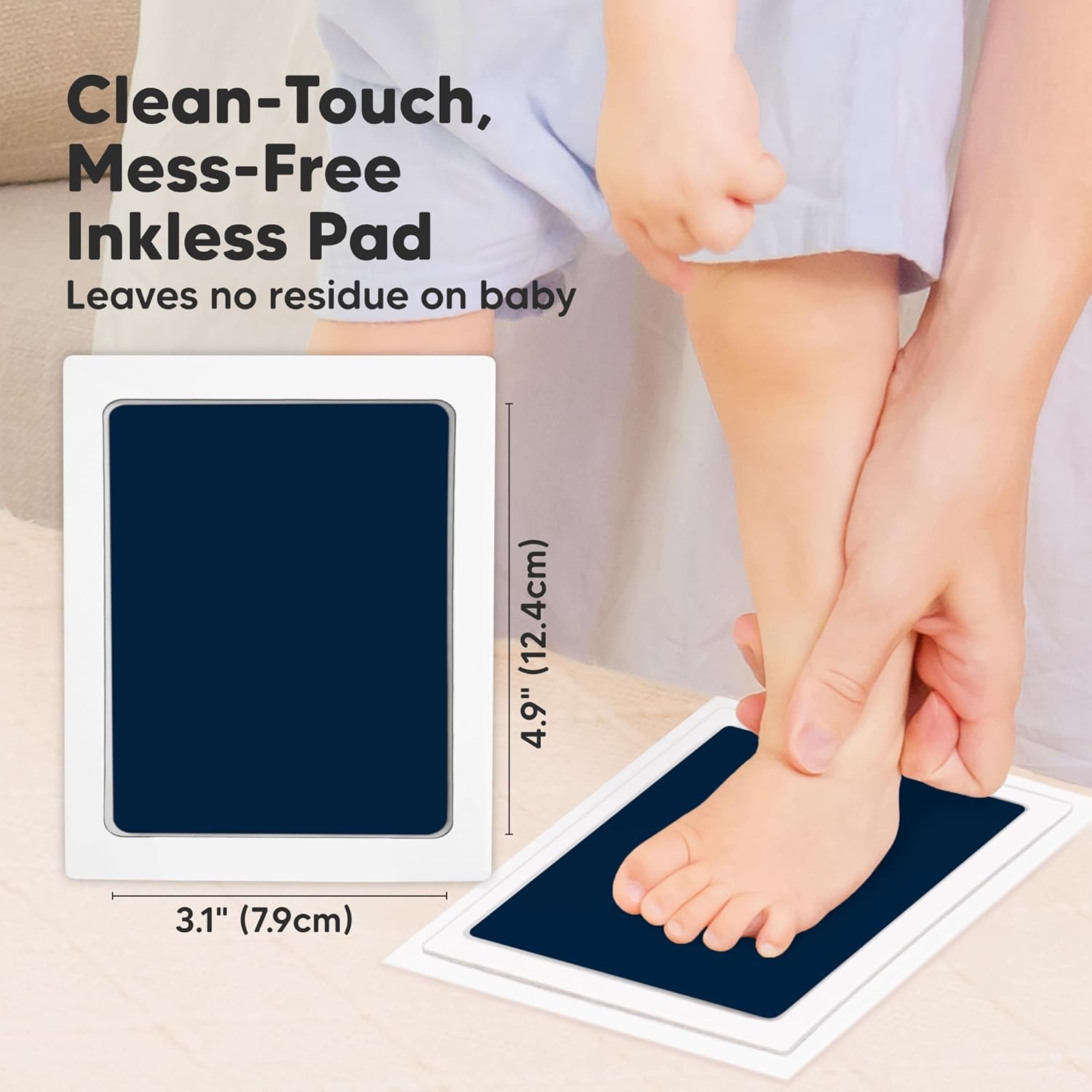 - No Mess, No Residue - Designed to create your baby's hand and footprints without leaving ink residue on your baby’s hands and feet. Our clean touch ink pads use a “zero ink contact” imprinting method to allow beautiful stamping of your baby’s hands and feet on art cards, memory book journals and other paper-based baby keepsakes. Mess free ink pad for babies.