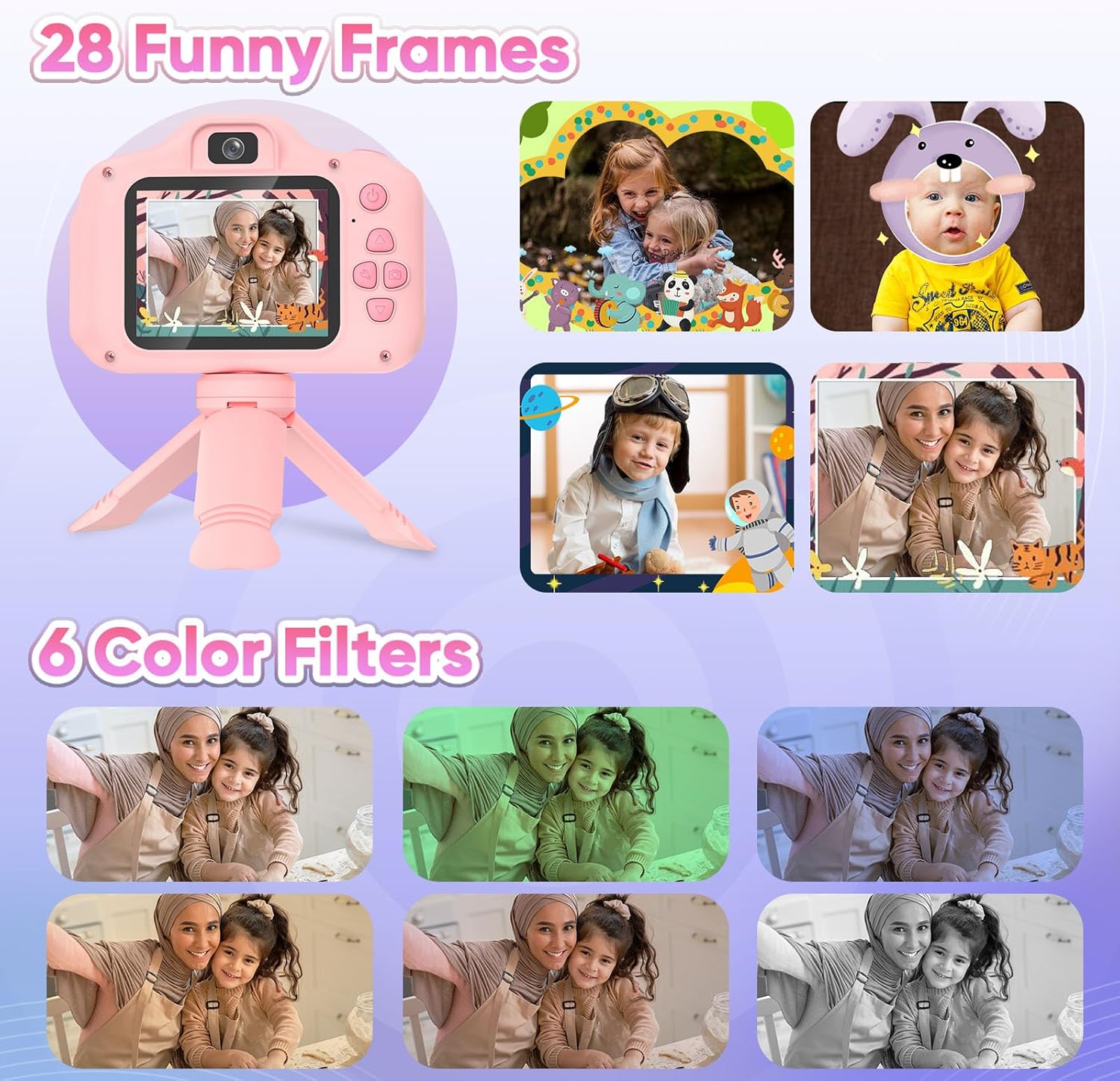 - SAFE & SHOCKPROOF: This camera is used high quality soft plastic,more safe and comfortable for children’s skin. Shockproof shell provides effective anti-fall protection. In addition, the camera adopts SLR exterior design to realize the children's dream of a small photographer