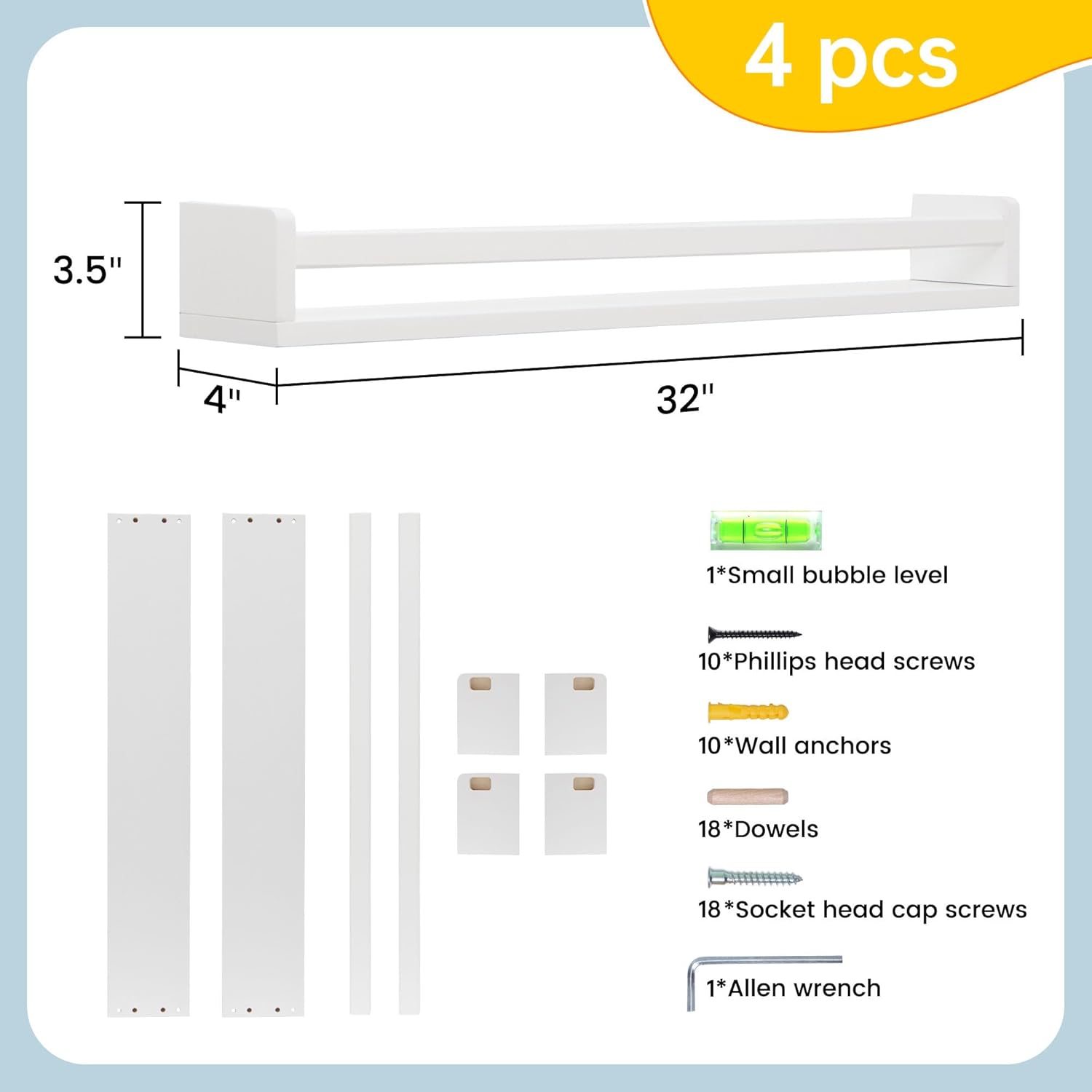 - Free Up Floor Space: Mount these sturdy shelves on any wall and free up valuable floor space in your nursery or children's room. Keep your child's belongings organized and within easy reach while reducing clutter and maximizing space