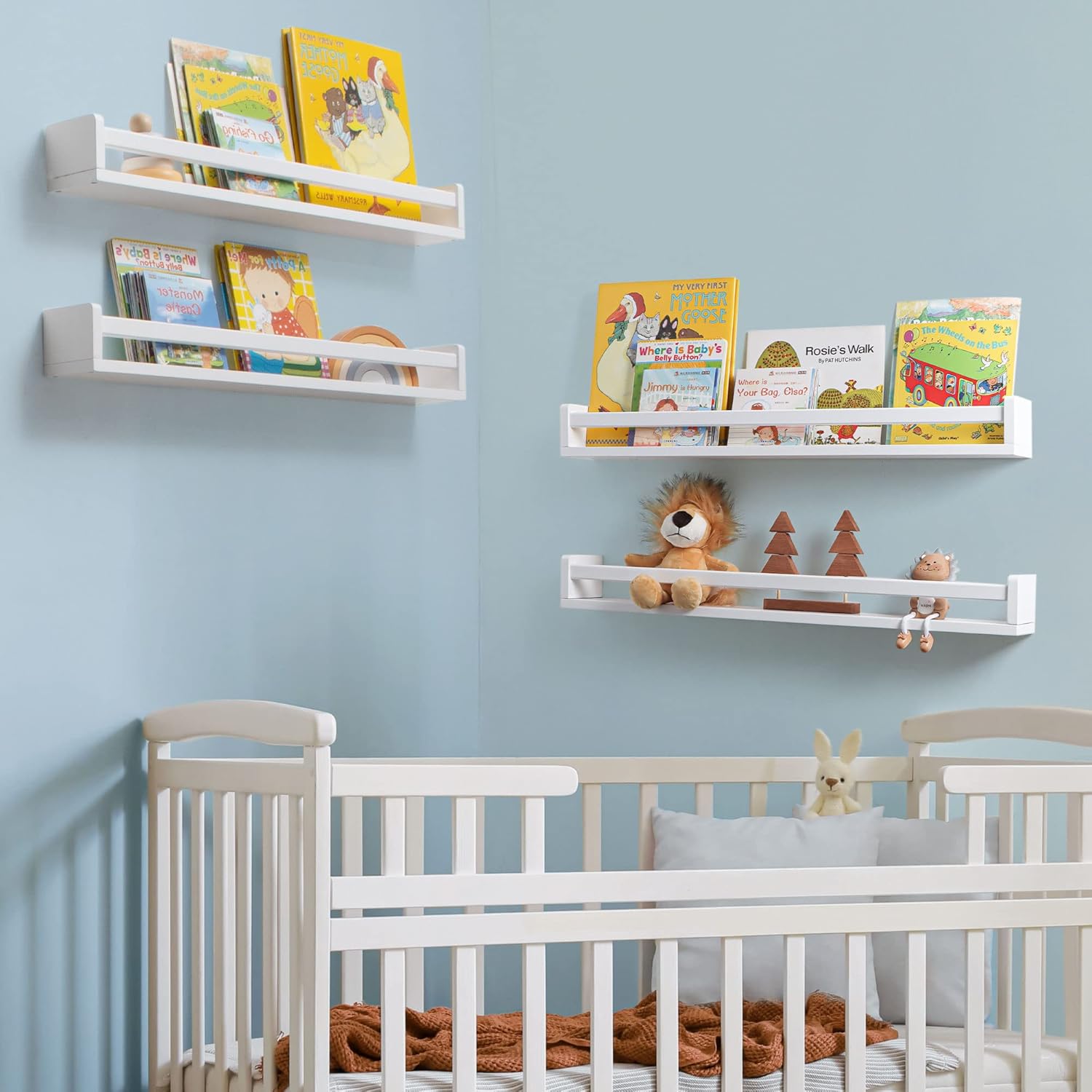 - Durable & High-Quality: Made of solid pine wood, these floating shelves are built to last. They'll provide a stylish and practical storage solution for years to come, making them an excellent addition to nursery decor and any room throughout your home