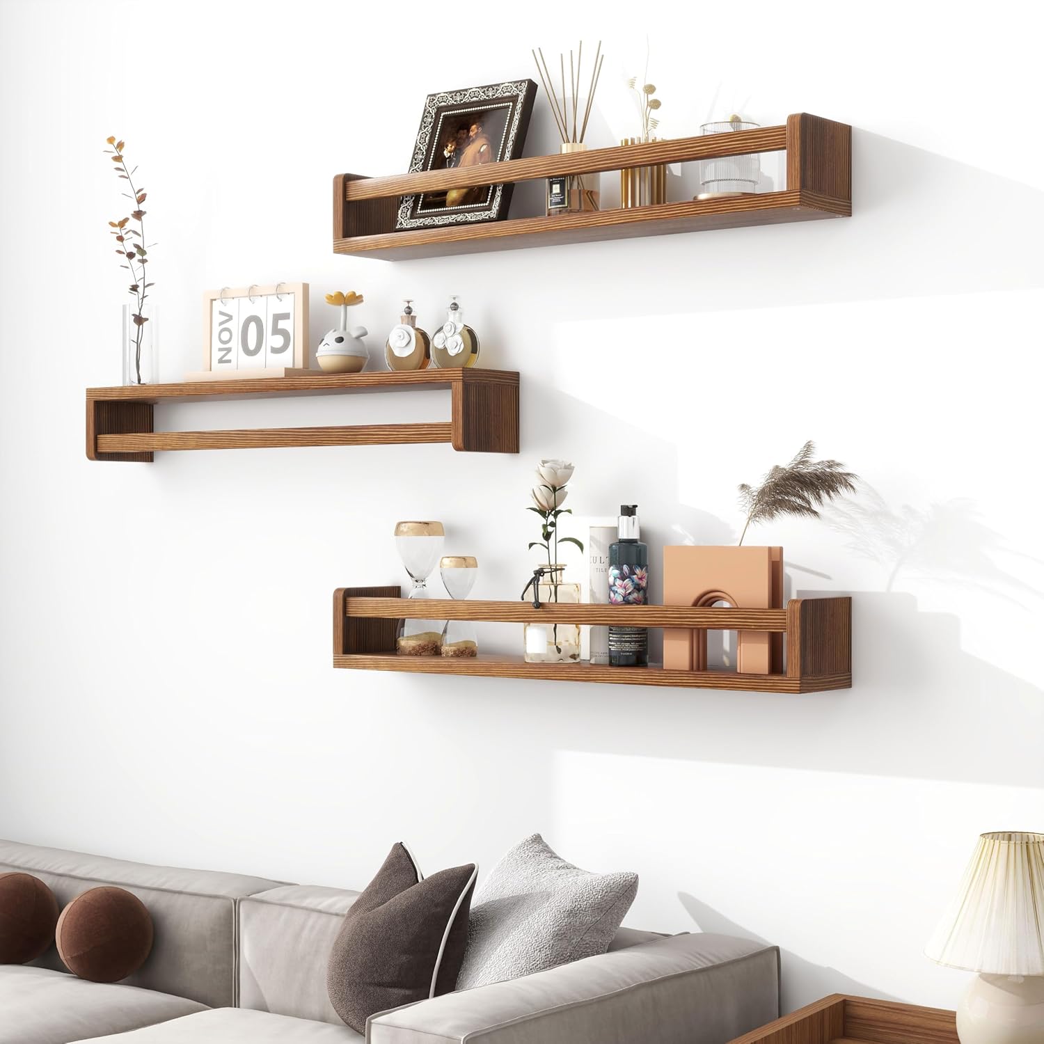 - Durable & High-Quality: Made of solid pine wood, these floating shelves are built to last. They'll provide a stylish and practical storage solution for years to come, making them an excellent addition to nursery decor and any room throughout your home