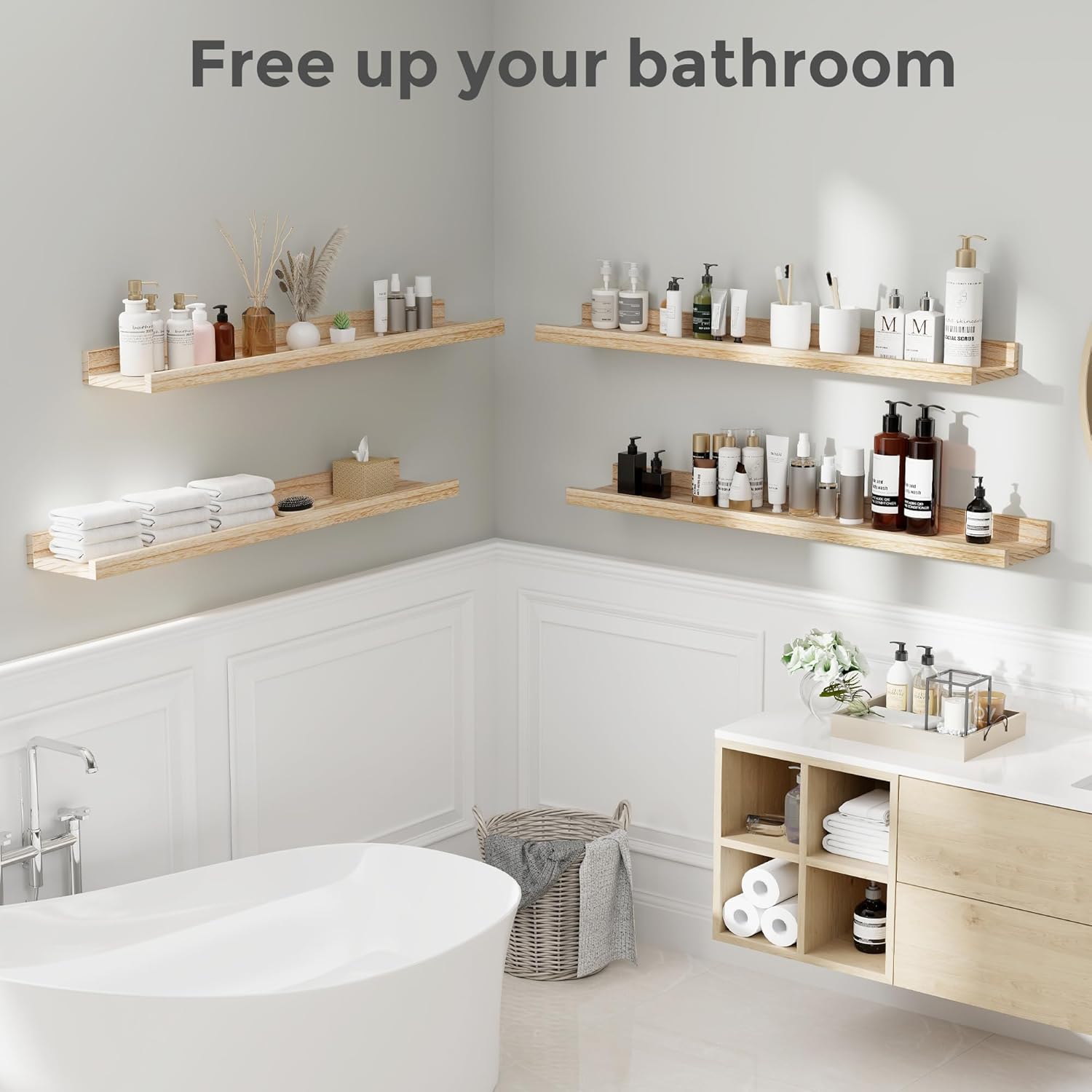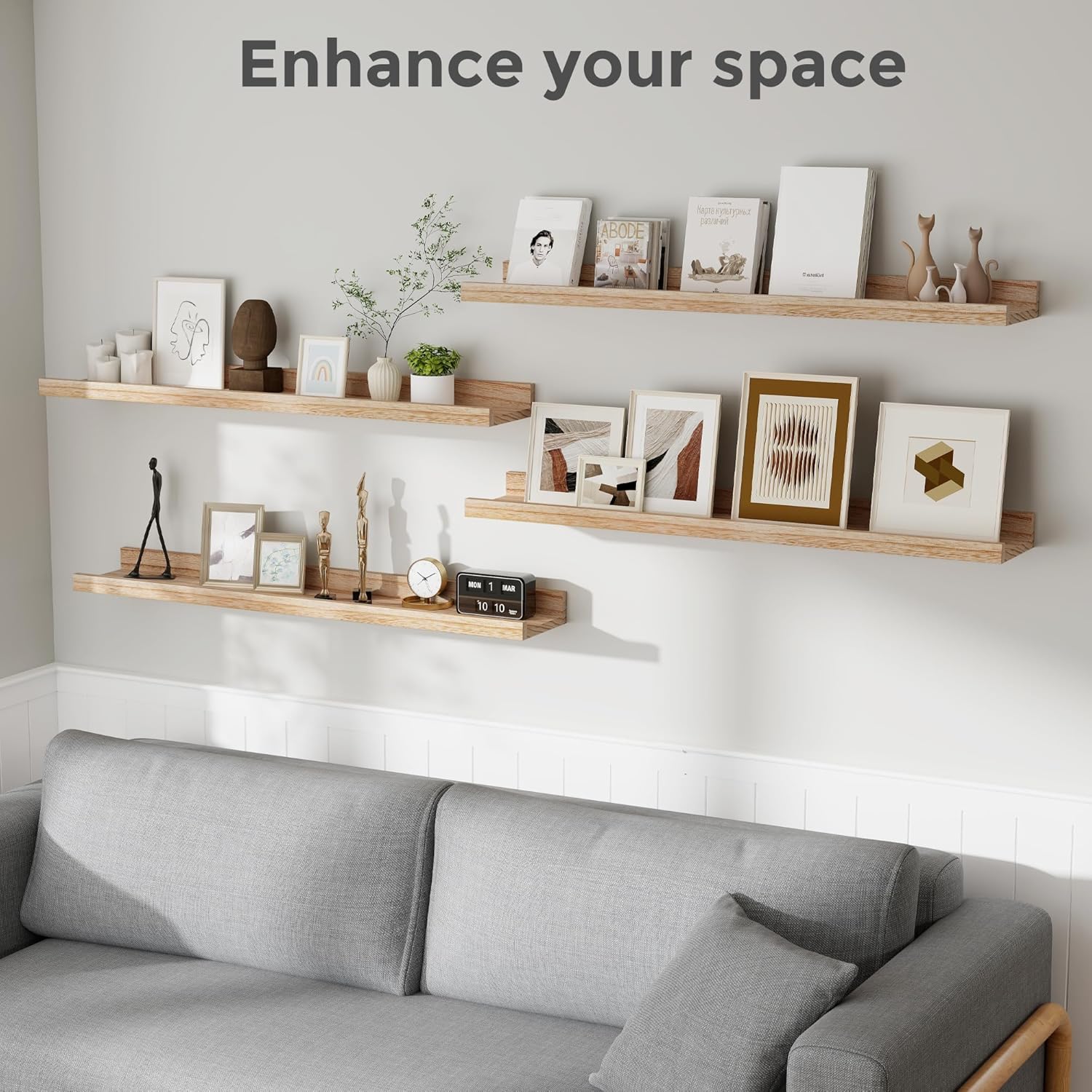 Fun Memories Rustic Wooden Picture Shelves for Wall with Ledge, 36 Inch Floating Shelves with Lip Set of 4, Kids Nursery Book Shelf Photo Shelf, Wall Mounted Display Shelves for Bedroom, Living Room