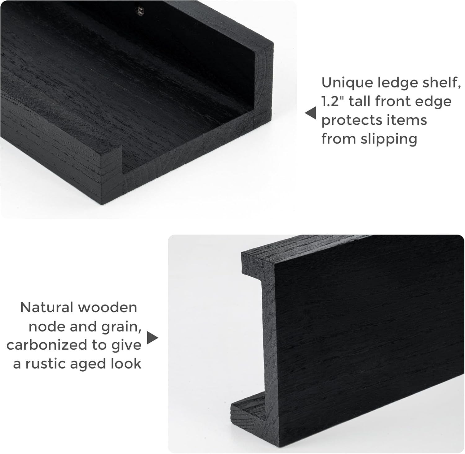 Fun Memories Floating Shelves Wall Mounted 36 Inch Long, Black Picture Shelves for Wall with Ledge, Solid Wood Wall Shelves with Lip Set of 4 for Bedroom, Kitchen, Bathroom