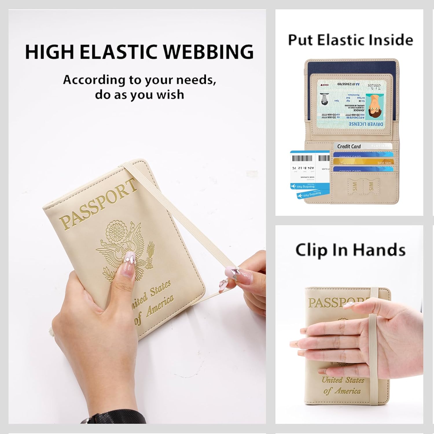 Melsbrinna Rfid Passport Holder for Travel women/Men, Cute Passport Wallet Rfid Blocking Card Slots, Rfid Passport Cover/CaseTravel Wallet, Passport Book Holder (1, Beige)