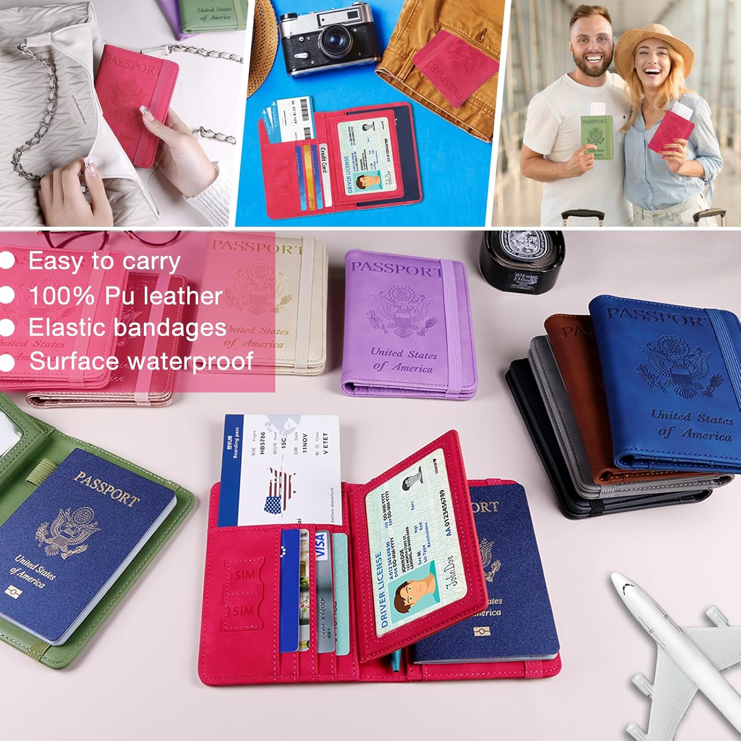 Melsbrinna Rfid Passport Holder for Travel women/Men, Cute Passport Wallet Rfid Blocking Card Slots, Rfid Passport Cover/CaseTravel Wallet, Passport Book Holder (1, Red5)