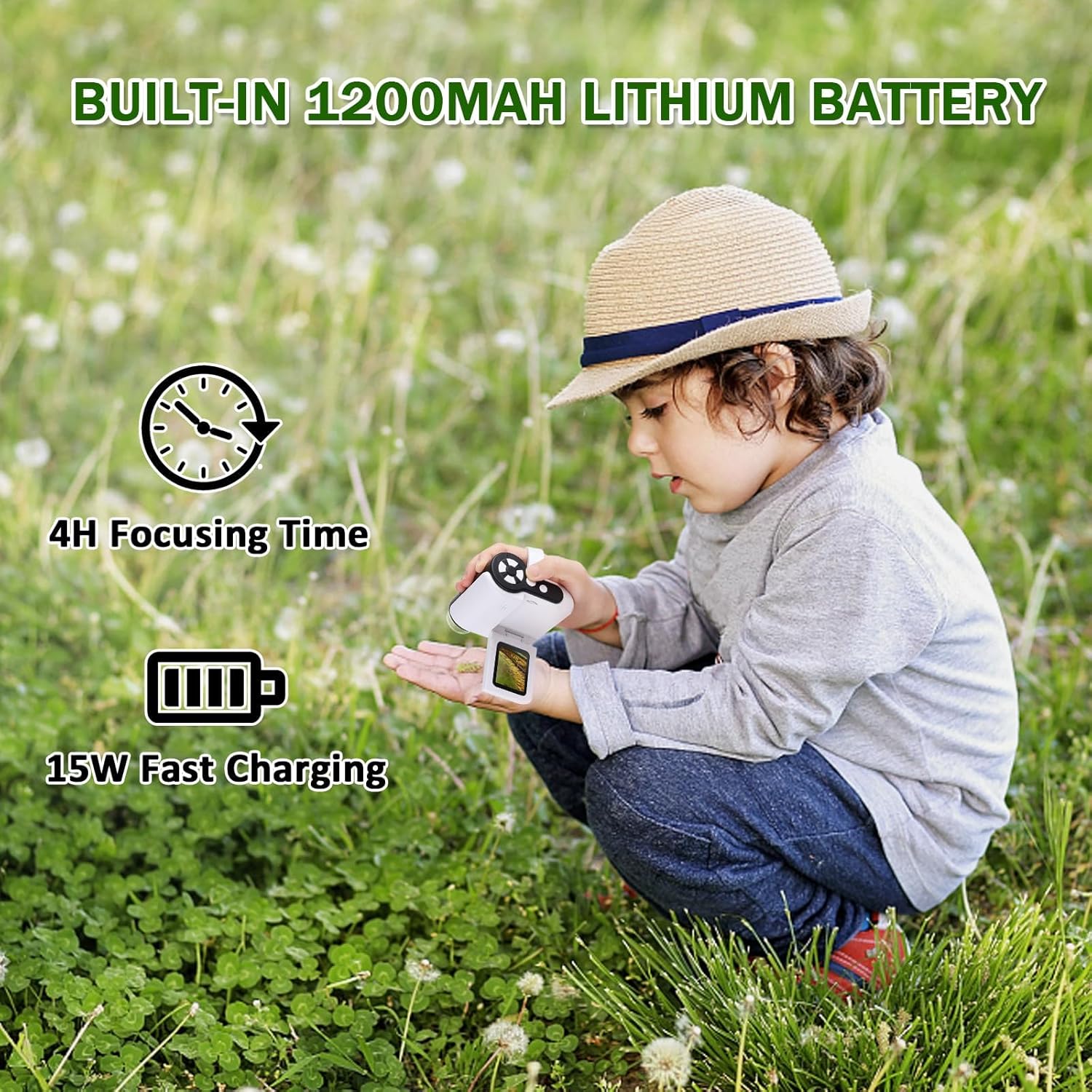 - 𝗣𝗼𝗿𝘁𝗮𝗯𝗹𝗲 𝗮𝗻𝗱 𝗟𝗶𝗴𝗵𝘁𝘄𝗲𝗶𝗴𝗵𝘁: The handheld microscope weighs less than 300 g, and it is small enough for pocket carrying, desirable for on-the-go exploration, whether it's in the backyard, at a park, or during field trips. This mini microscope is a great gifts for STEM learning