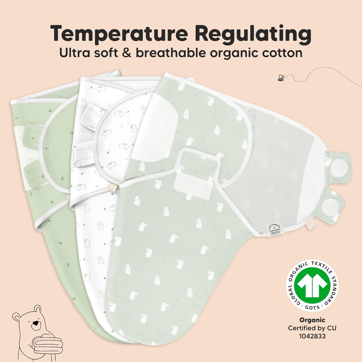 - Breathable & Temperature-regulating - Our Soothe Swaddle for newborns is made with ultra-soft Organic Cotton (GOTS Certified by CU 1042833), it is lightweight and highly breathable, making it a highly-raved newborn swaddle 3-6 months in all seasons.