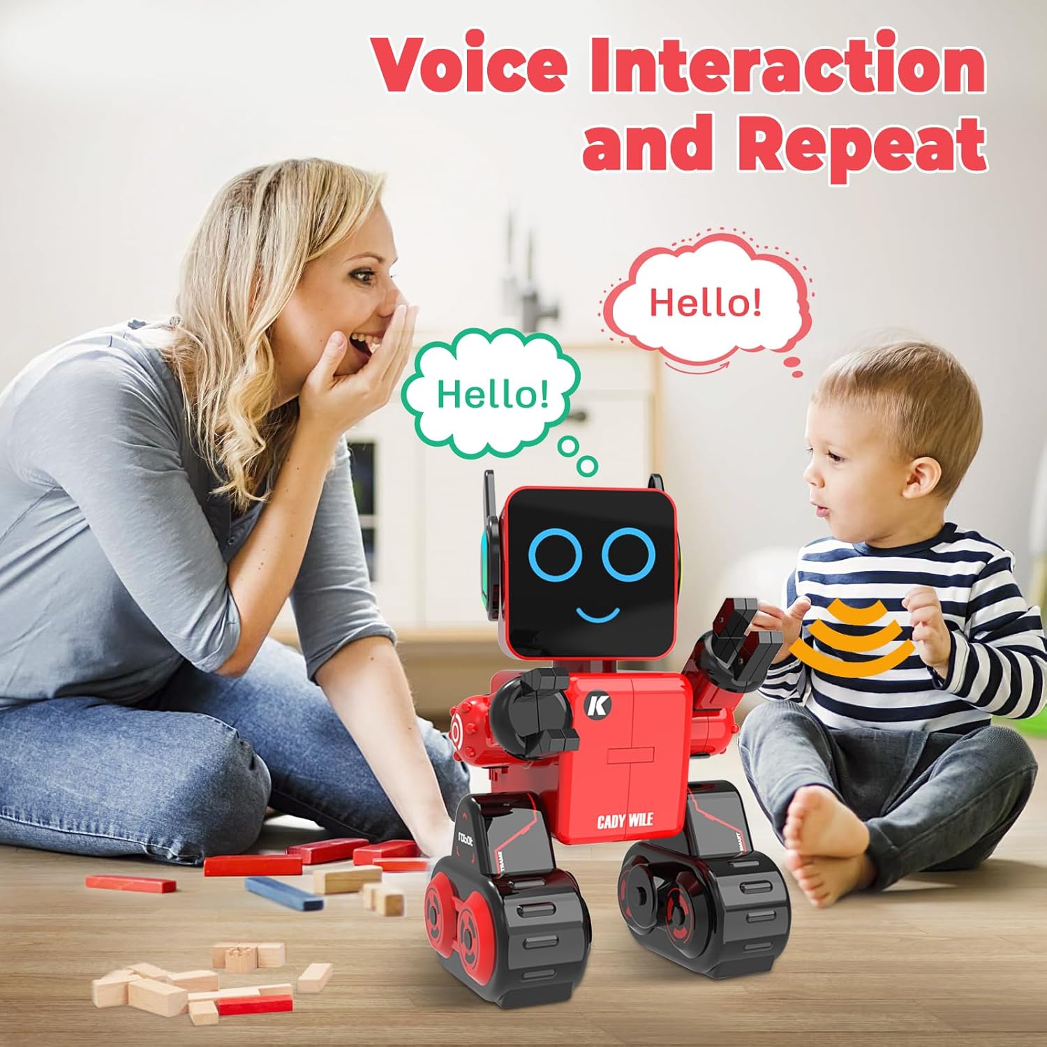 - Multiple Interactive Mode Robot Toy: Touching the interactive toy robot's head and clapping your hands will provide a corresponding command. Enter voice interaction mode, you say "Hello", the talking robot will record what you said, and can repeat what you said with 3 different voices, saying "Hello".