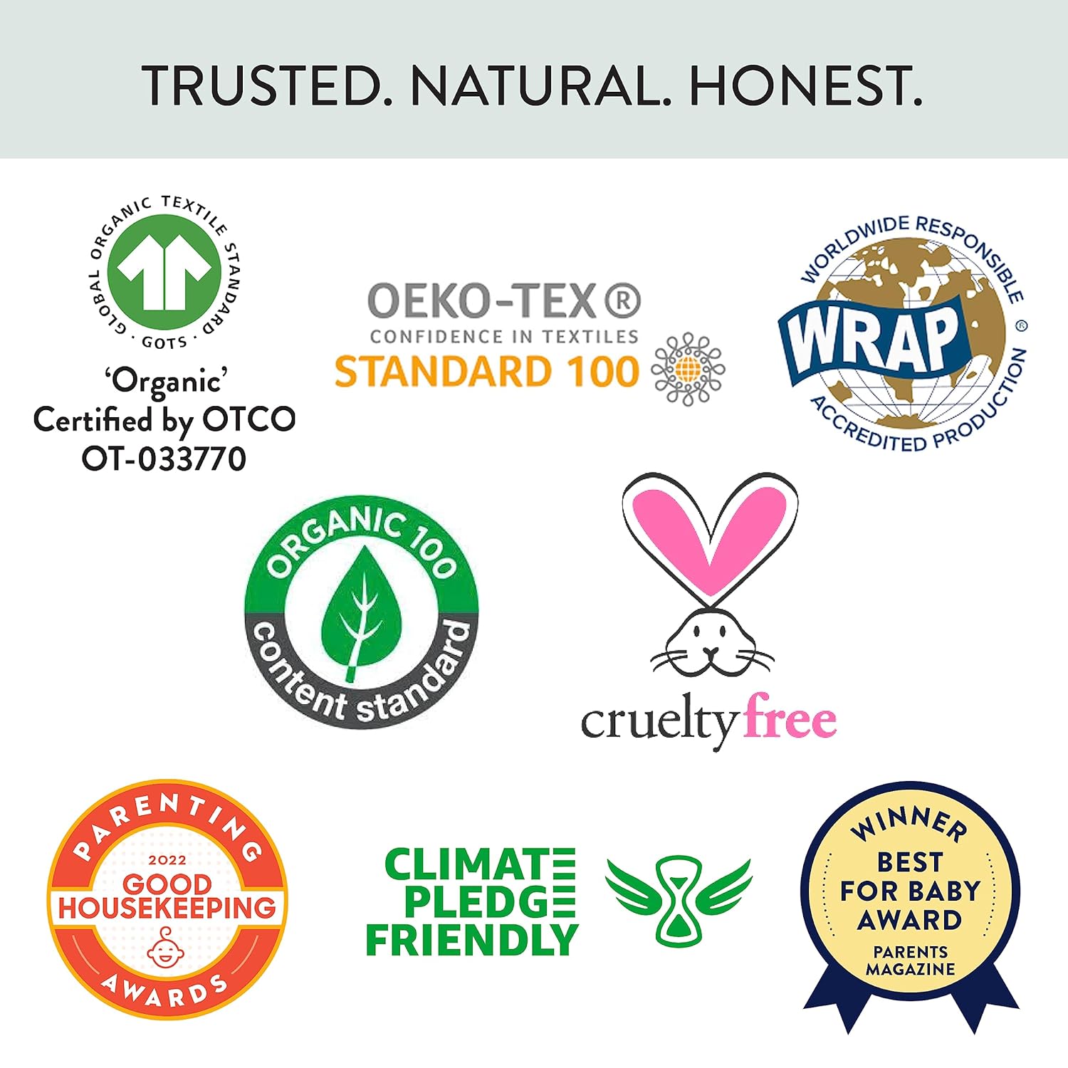 - 100% ORGANIC COTTON certified by GOTS: GOTS is the leading world-wide standard for products made in sustainable manufacturing facilities without the use of synthetic pesticides, are non-toxic, PVC free and made without heavy metal phthalate dyes