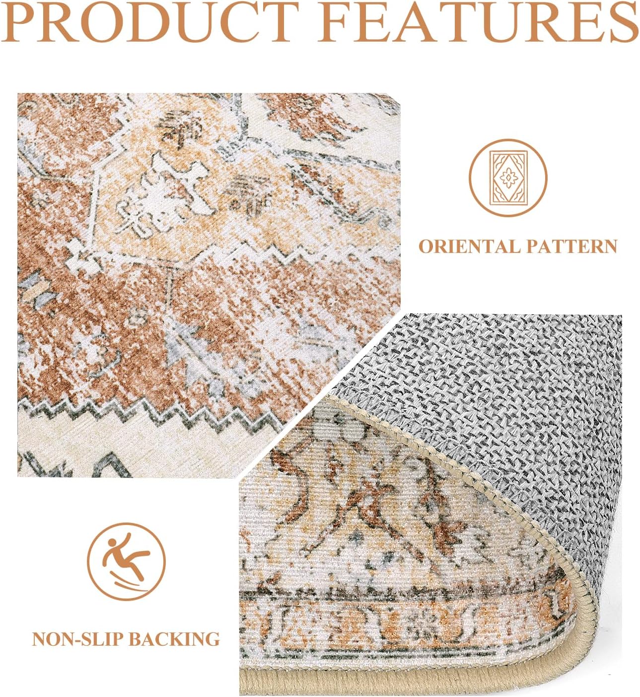 Lahome 5x7 Boho Machine Washable Area Rug (Non-Slip Lightweight Low-Pile)(Oriental Distressed Print for Living,Bedroom,Office)