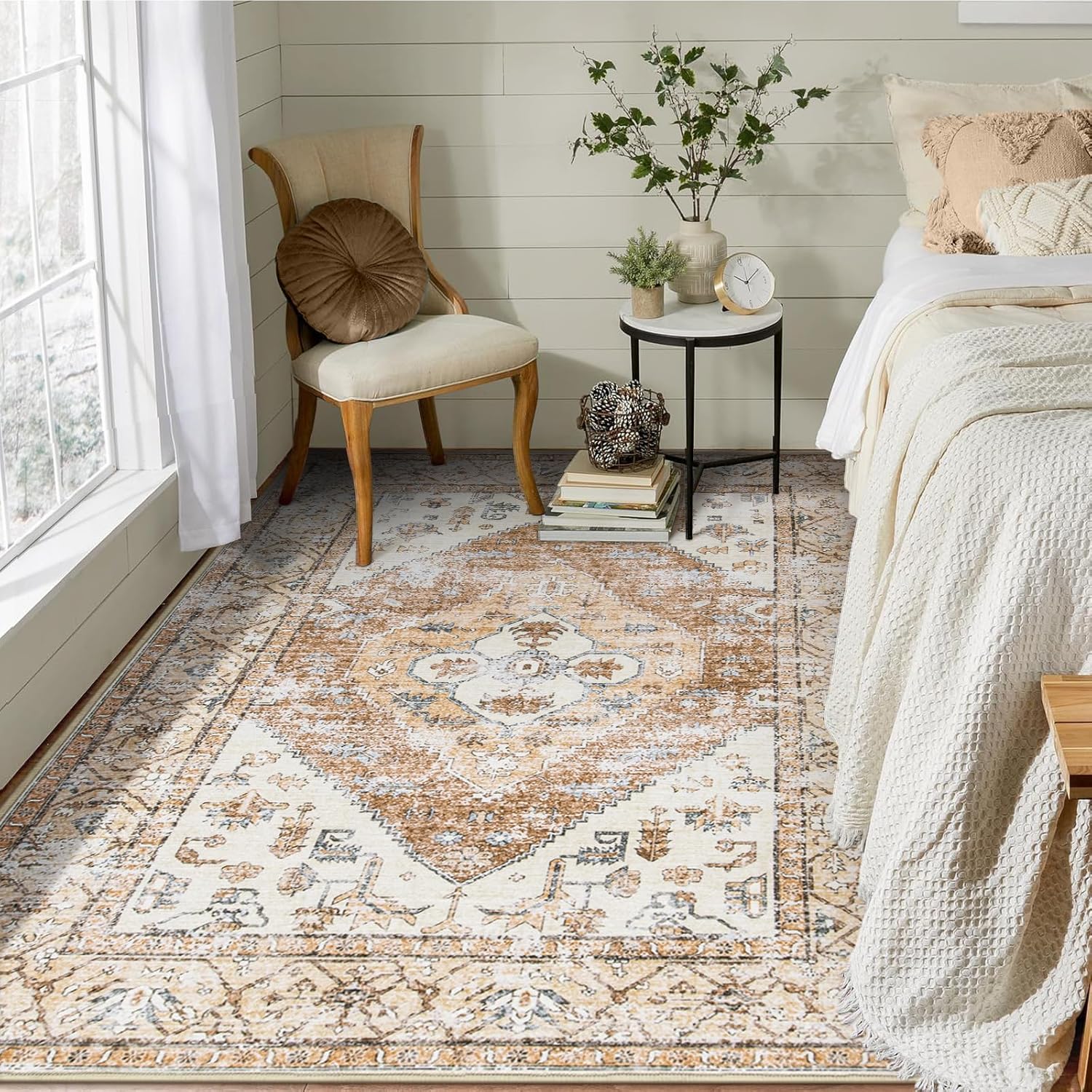 Lahome Boho Area Rug for Living Room - 4x6 Rug Washable Non-Slip Throw Bedroom Rug Lightweight Non-Shedding Large Kitchen Carpet, Oriental Distressed Print Carpet for Office Classroom Dining Room